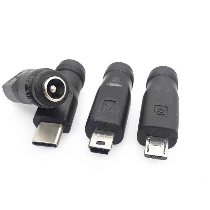 อะแดปเตอร์แปลง DC ปลั๊ก5.5มม.x 2.1มม.ตัวเมียเป็น Micro USB mini USB Type-C ตัวผู้อะแดปเตอร์ DC แหล่งจ่ายไฟ DC