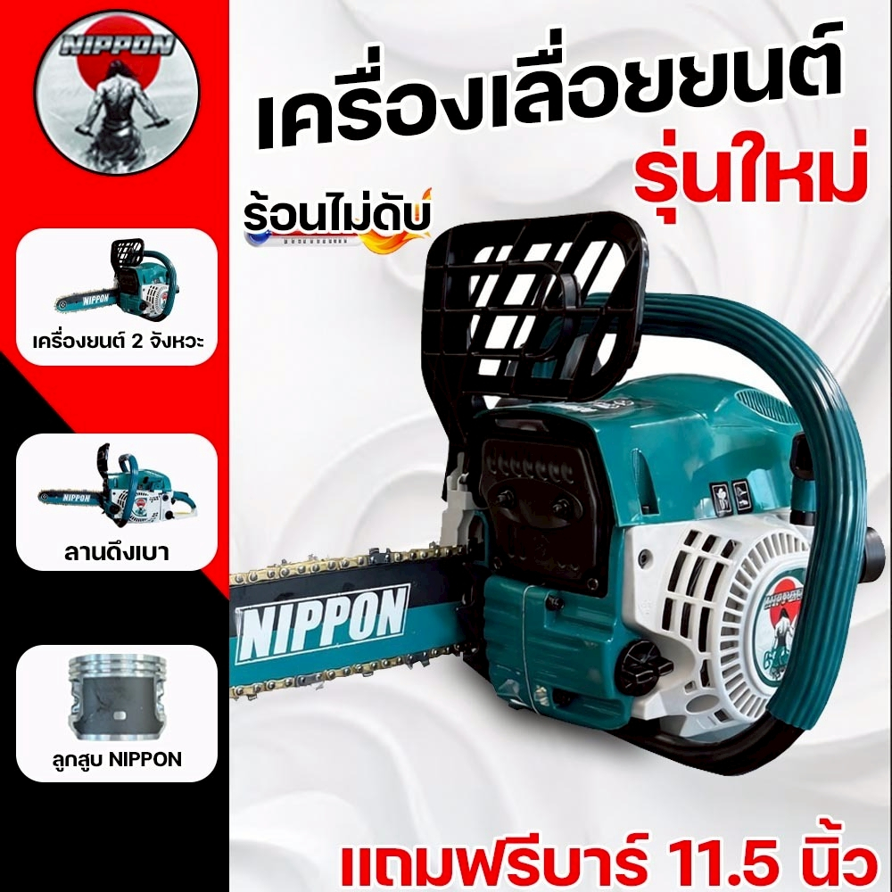 เลื่อยยนต์ตัดไม้ NIPPON 6200 (7 TURBO) 9HP ลูกสูบ 46 มม. เสื้อ 2 พ็อต โซ่ทองเยอรมัน รับประกัน 1 ปี