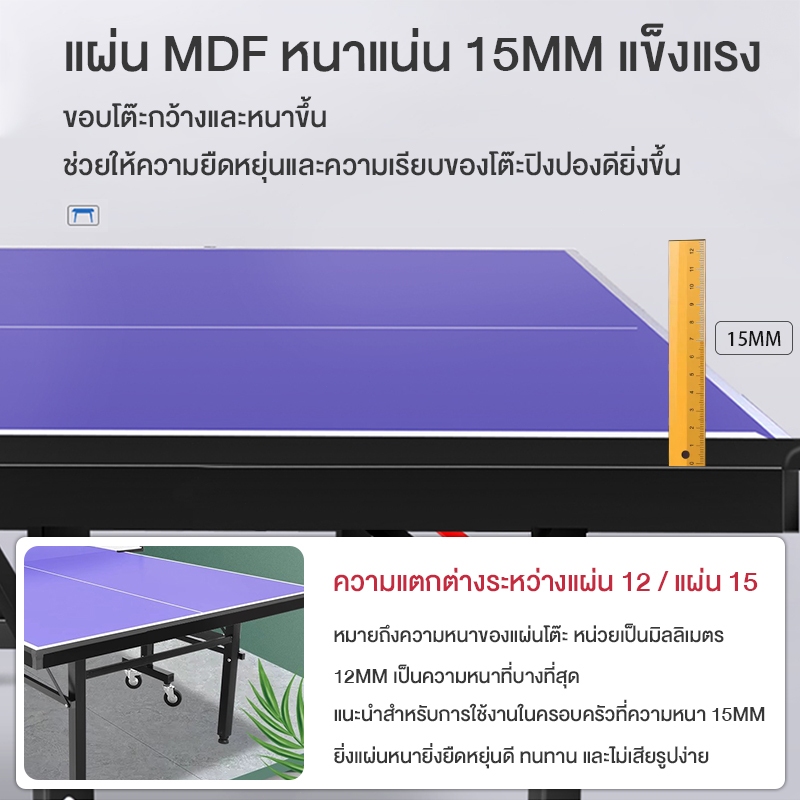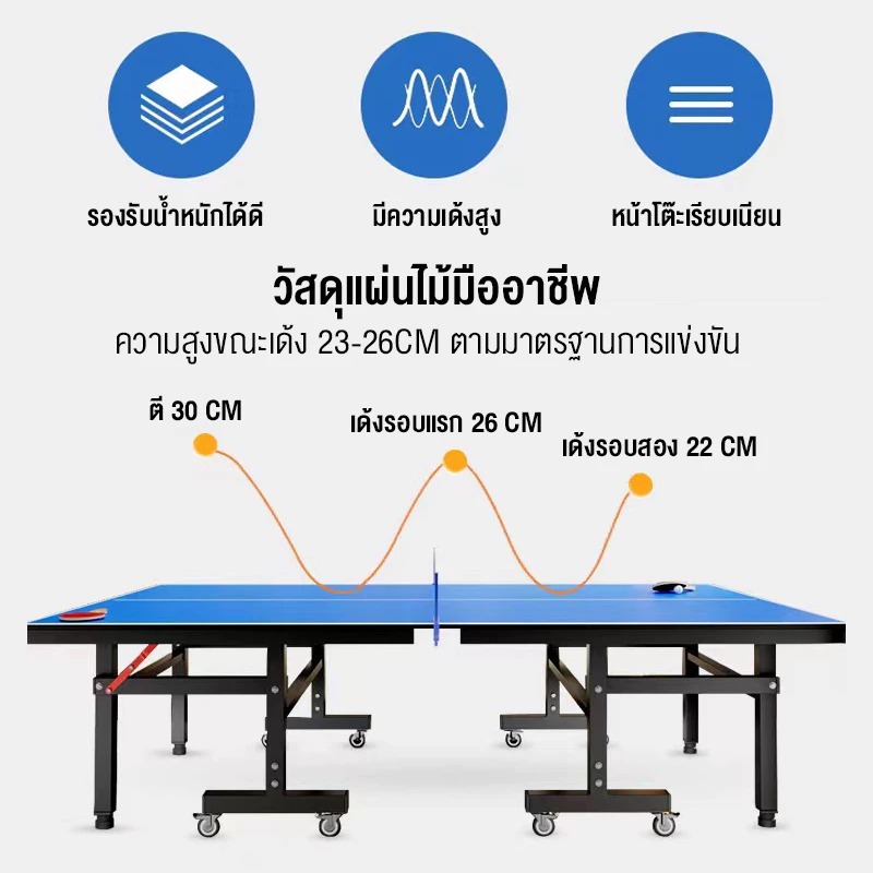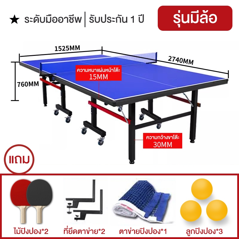 Table Tennis Table โต๊ะปิงปองแบบเคลื่อนย้าย มาตรฐานการแข่งขันระดับมืออาชีพ แถมฟรีไม้ปิงปอง ลูกปิงป อง ตาข่าย รับประกัน1ปี