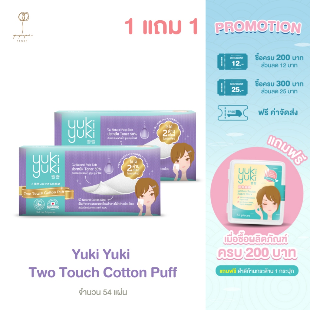(1 แถม 1) Yuki Yuki Two Touch Cotton Puff 54 pcs./Box