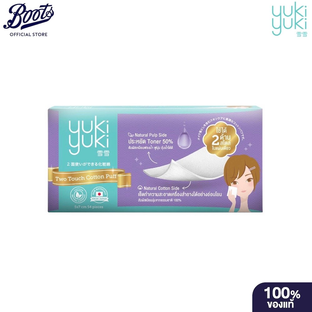 Yuki Yuki Two Touch Cotton Puff 54 Pads ยูกิ ยูกิ ทูทัช คอตตอนพัฟ 54 แผ่น