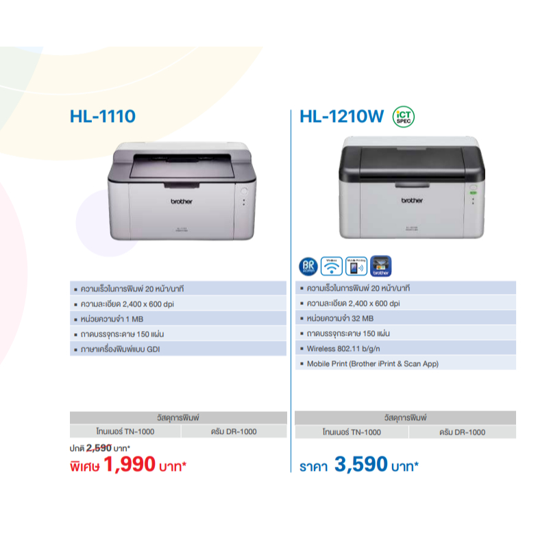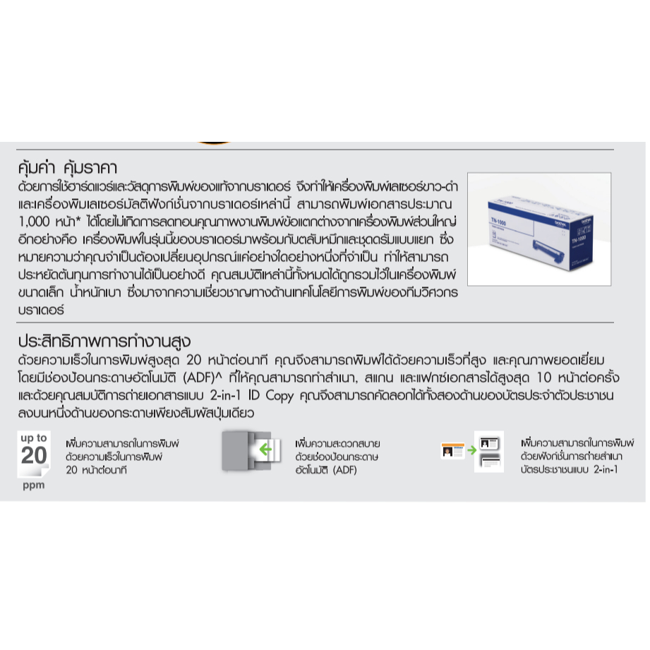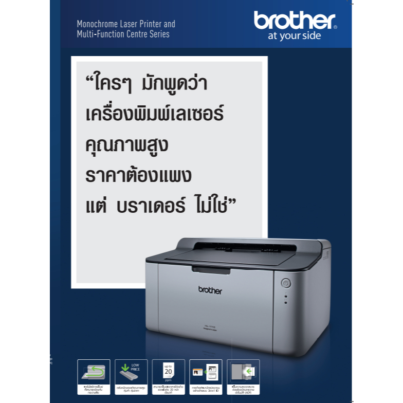 Brother HL-1110 Mono Laser Printer 2Y เครื่องพิมพ์เลเซอร์ ขาว-ดำ หมึกแท้