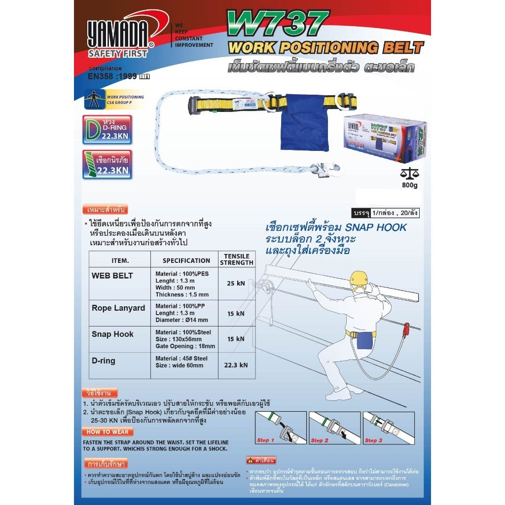 YAMADA เข็มขัดนิรภัย รุ่น W737 แบบครึ่งตัว ตะขอเล็กพร้อมเชือก