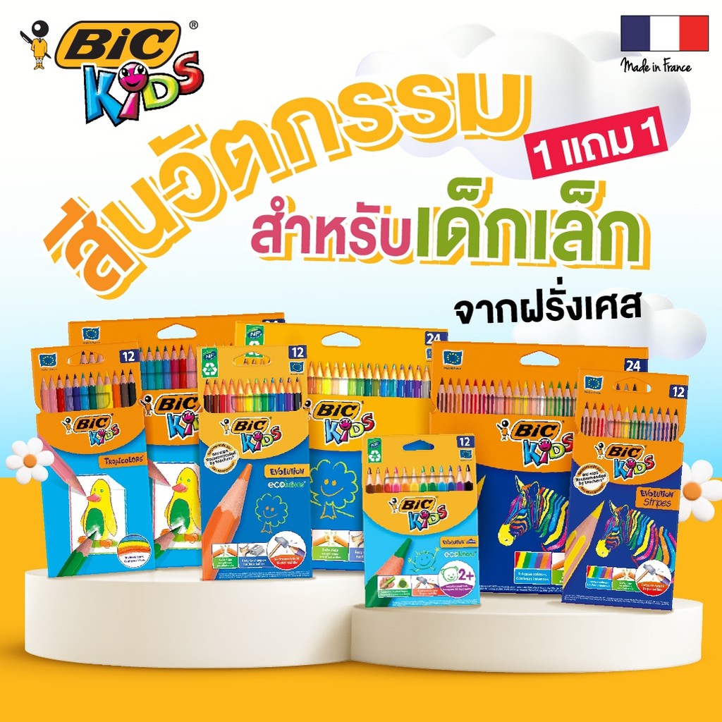 [Official Store] BIC บิ๊ก ดินสอสีเทียน BIC Kids Wax Crayons จำนวน 12สี - 24สี