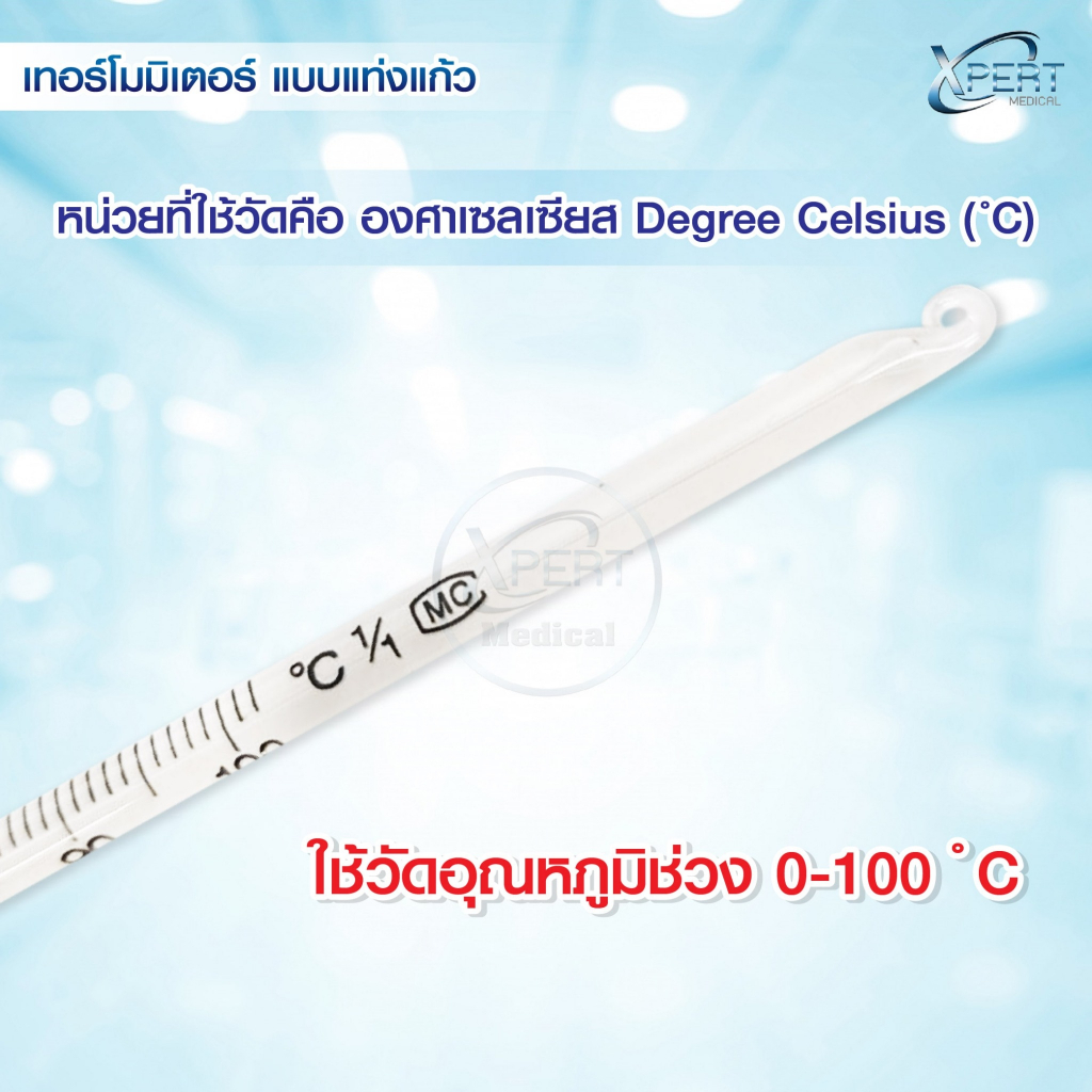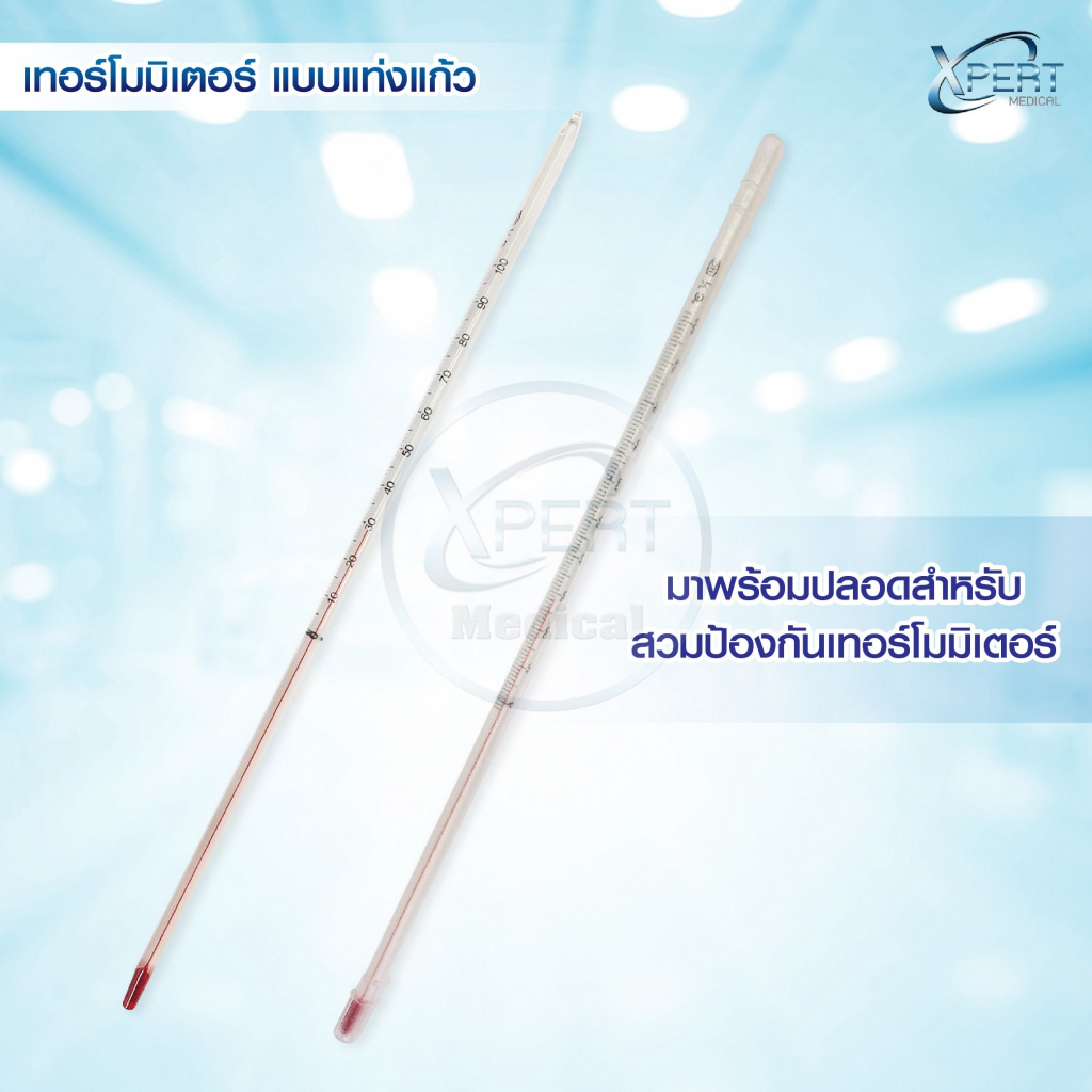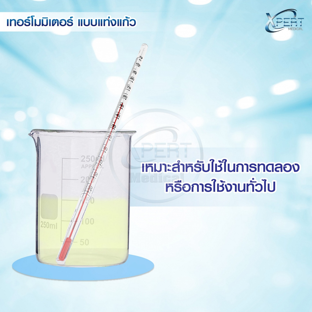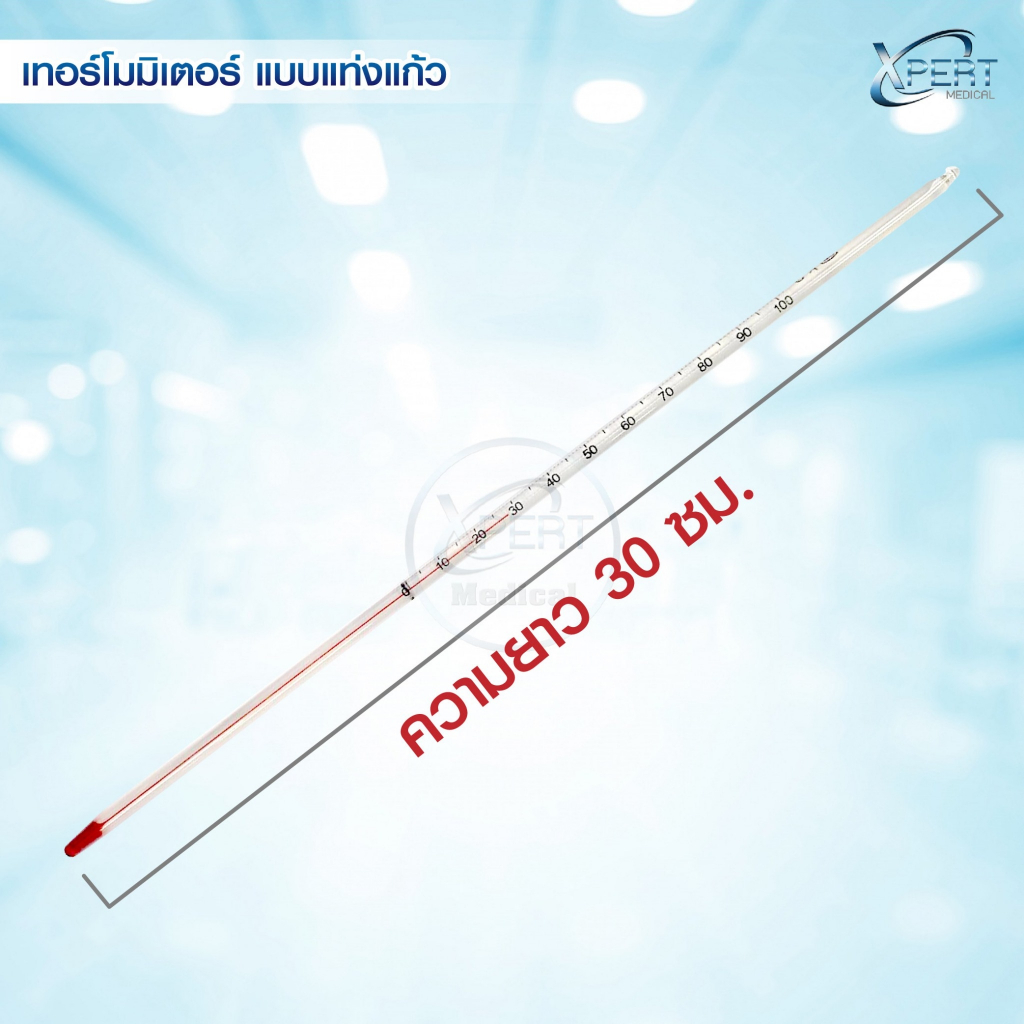 เทอร์โมมิเตอร์ วัดอุณหภูมิ แบบแท่งแก้ว Thermometer 0-100 องศา ยาว 30 ซม. ปรอทแก้ว ทนกรดด่าง
