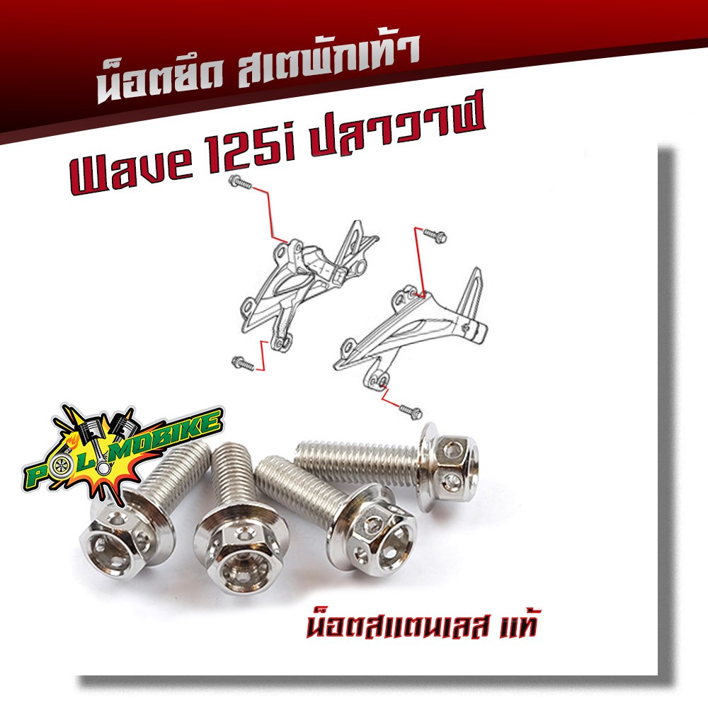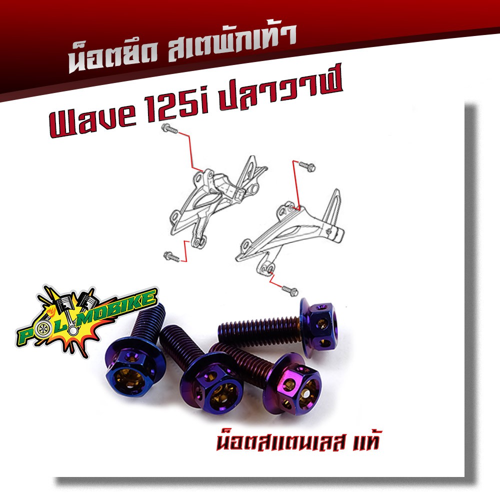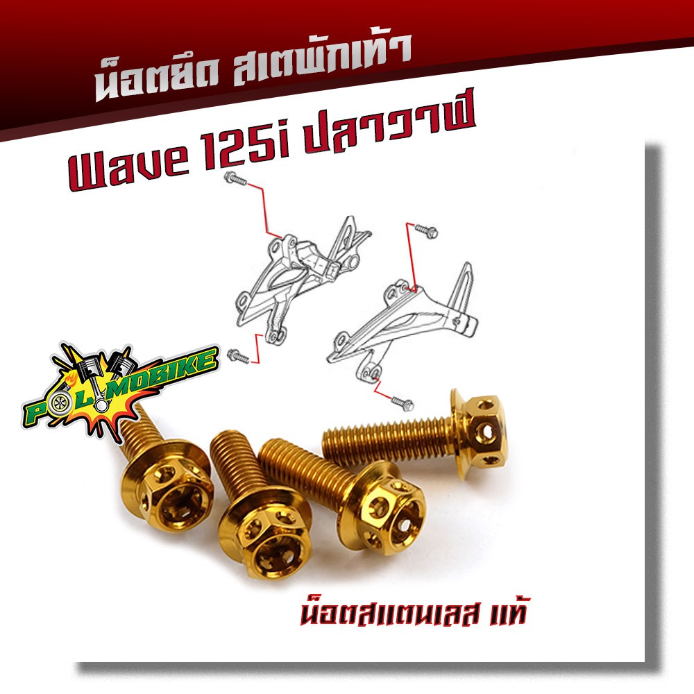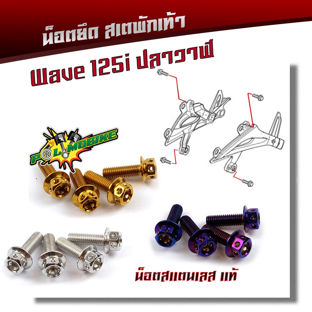 น็อตสเตพักเท้า WAVE 125i ปลาวาฬ น็อตหัวเจาะ น็อตเลส น็อตทอง น็อตไทเท สแตนเลสแท้ น็อตพักเท้า ของแต่งเวฟ125i