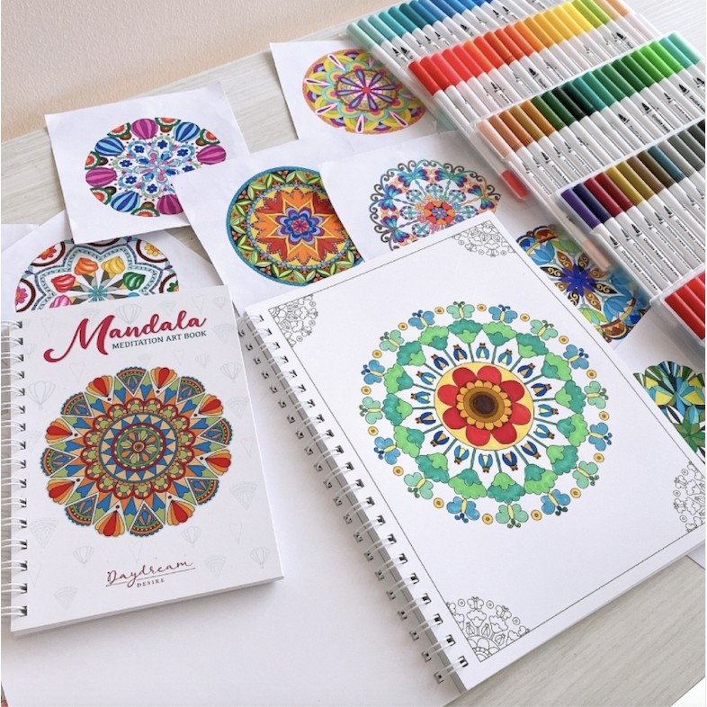 สมุดระบายสีฝึกสมาธิแมนดาลา เส่มใหญ่สุดคุ้ม กระดาษหนา 210แกรม(หนามากๆ) 32 ผลงานแมนดาลาmandala