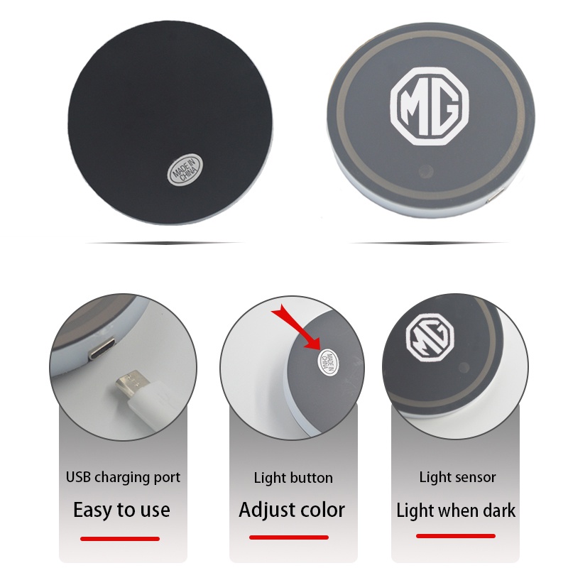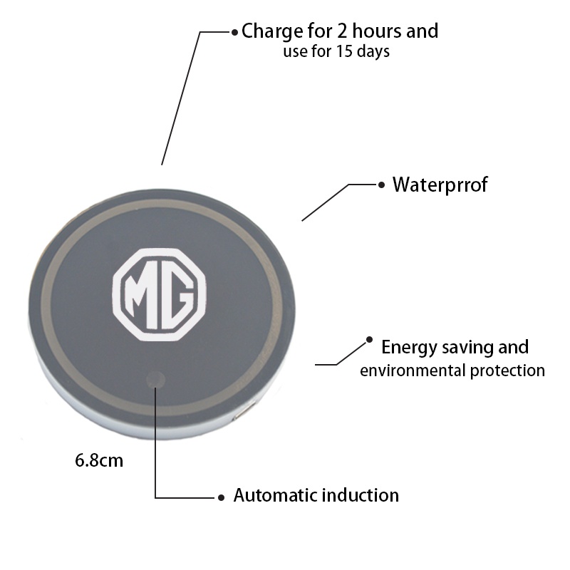 ที่วางแก้วน้ําในรถยนต์ แบบเรืองแสง 7 สี ชาร์จ USB สําหรับ MG MG6 ZS HS GS 5 Gundam 350 Parts TF GT6 1 2 ชิ้น