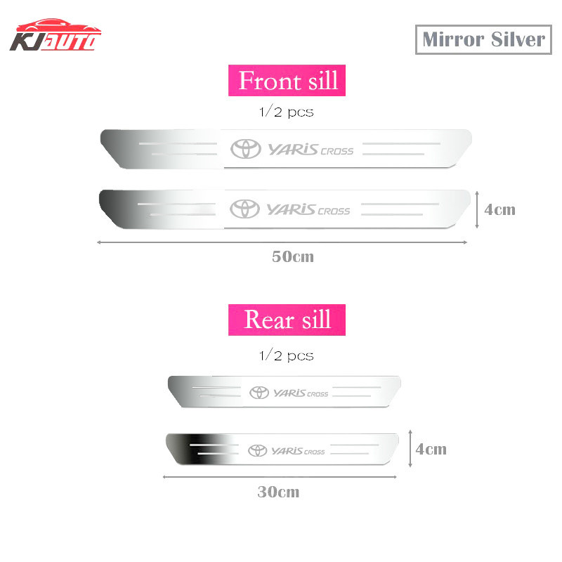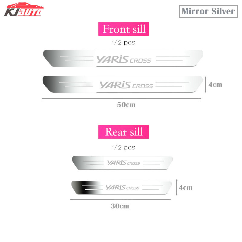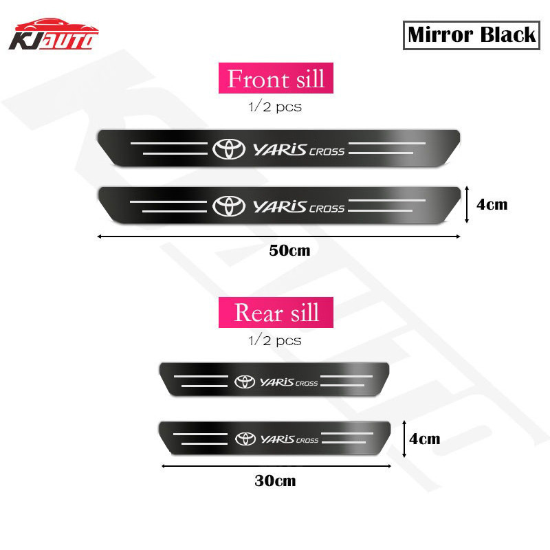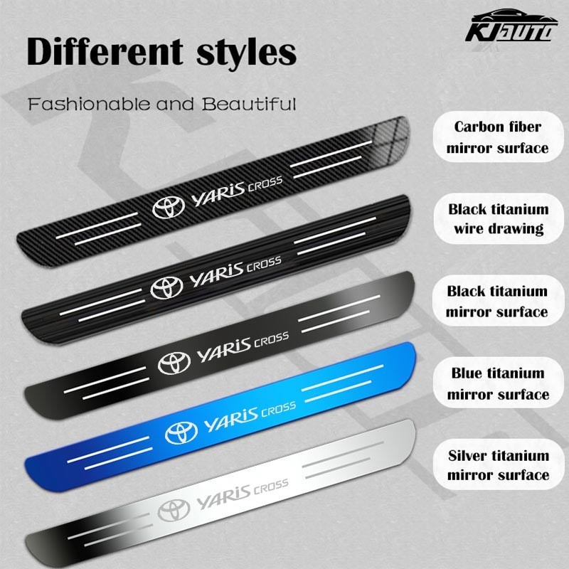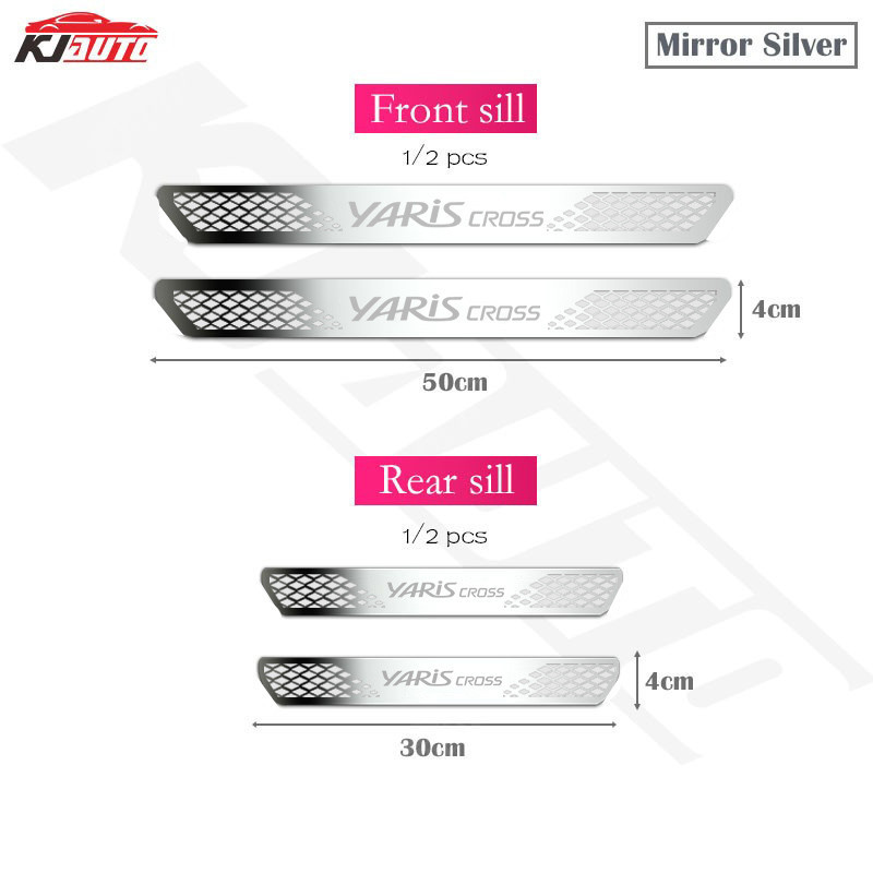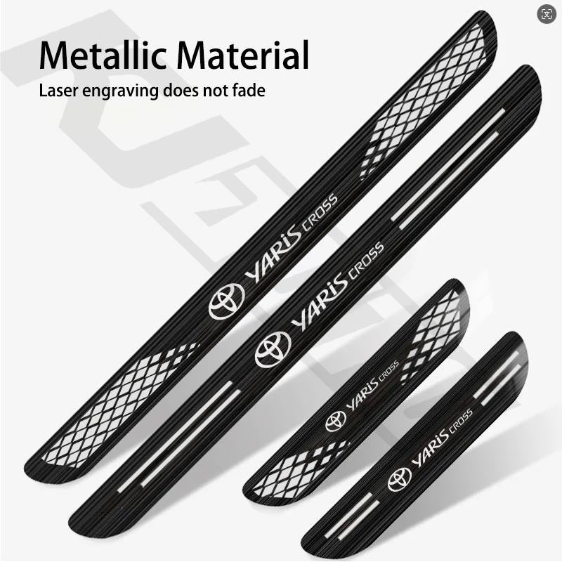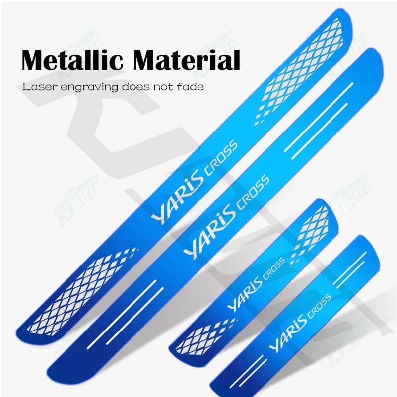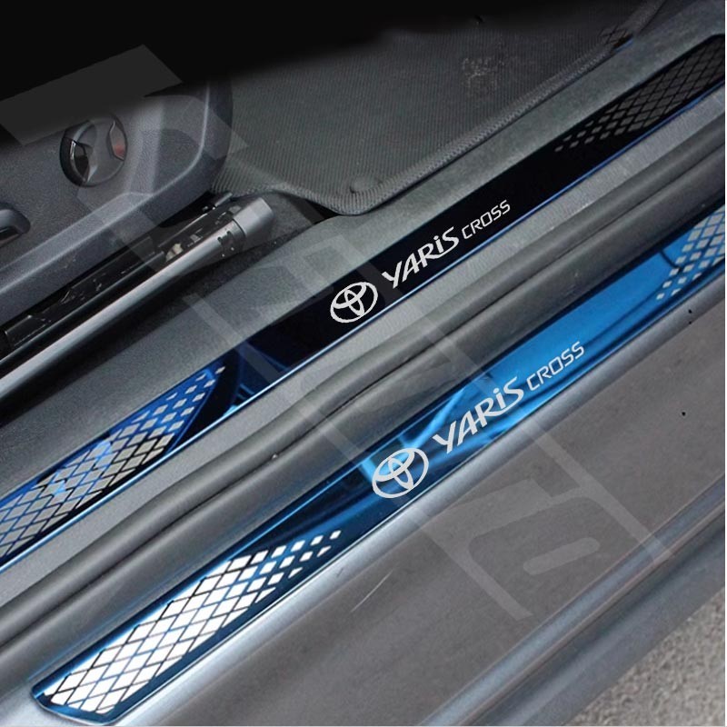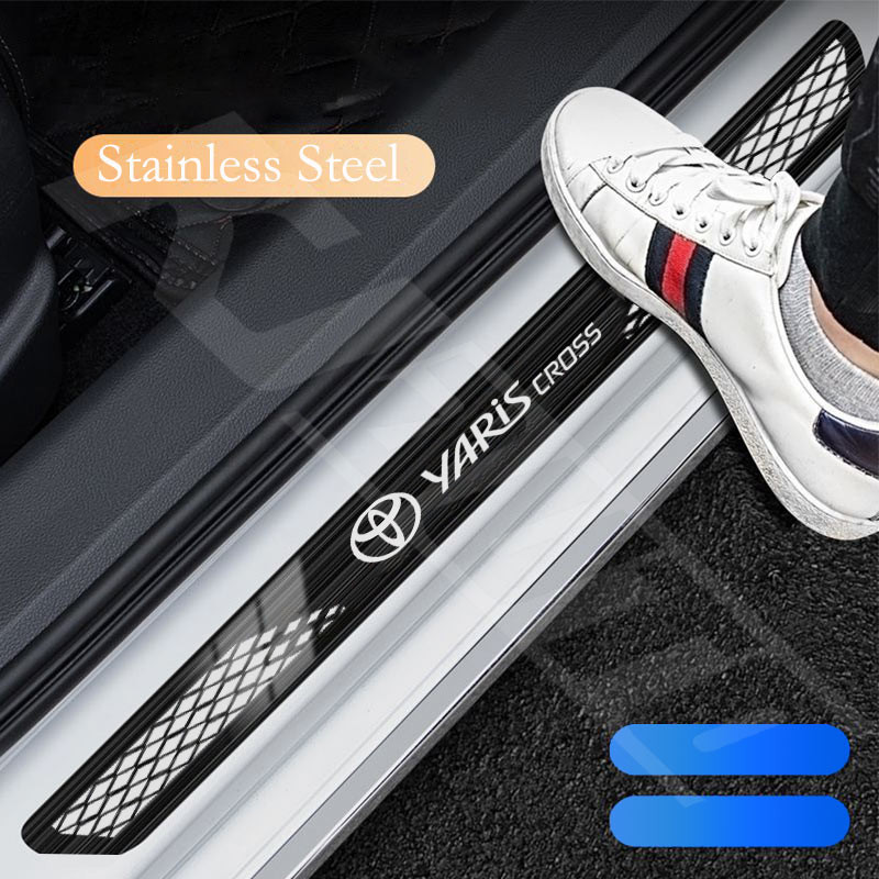 4pcs Toyota Yaris Cross รถสแตนเลสเกณฑ์แถบประตูรถ Sill โลหะยินดีต้อนรับ Pedal Auto ตกแต่งสติกเกอร์จัดแต่งทรงผมสําหรับ Yaris Cross AC200 GS HEV TRD GR กีฬา