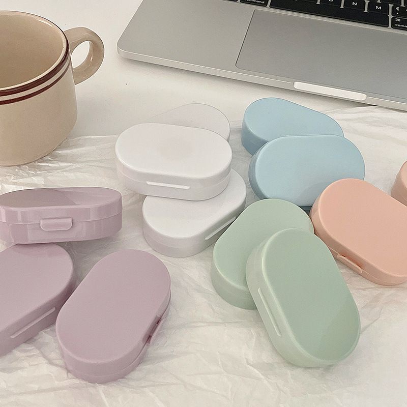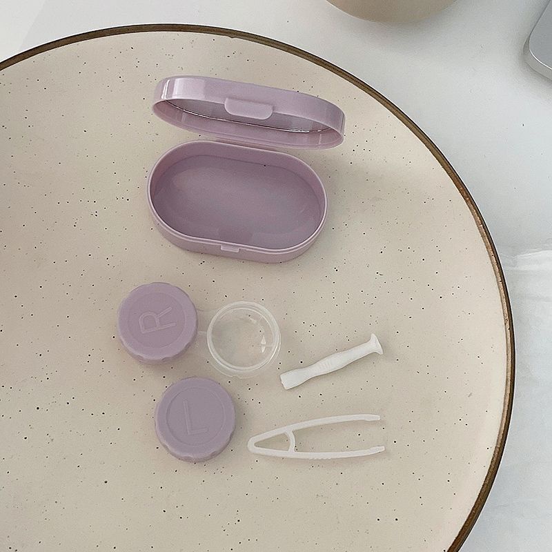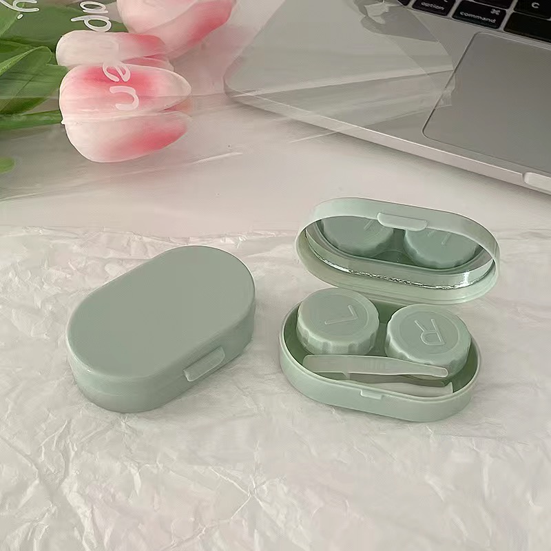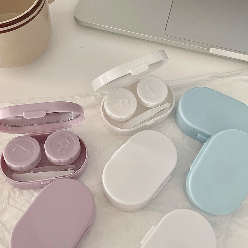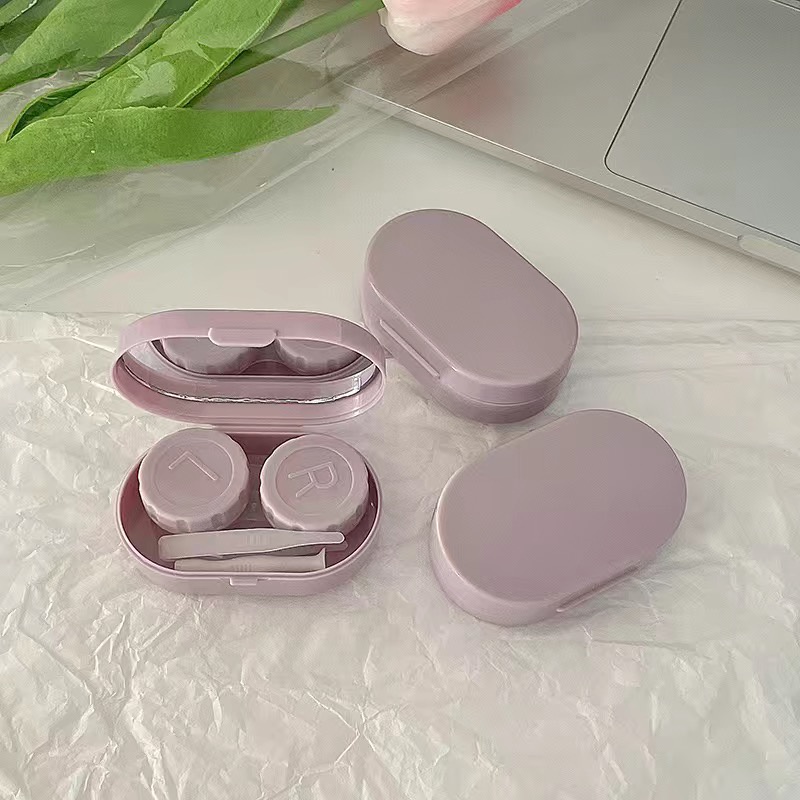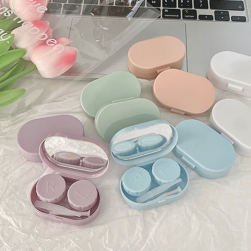 กล่องคอนแทคเลนส์ พร้อมกระจก ขนาดเล็ก แบบพกพา สีพื้น สไตล์เกาหลี