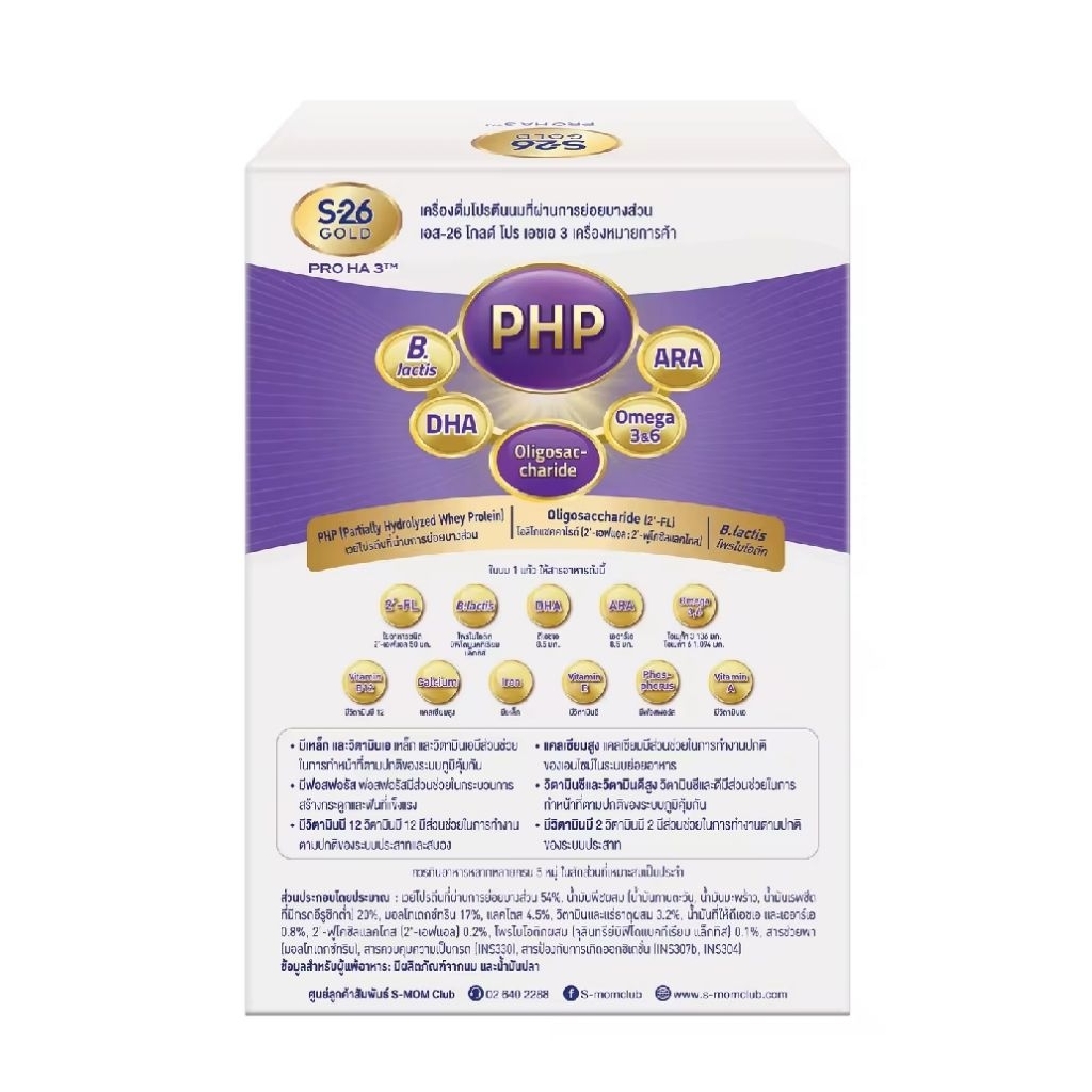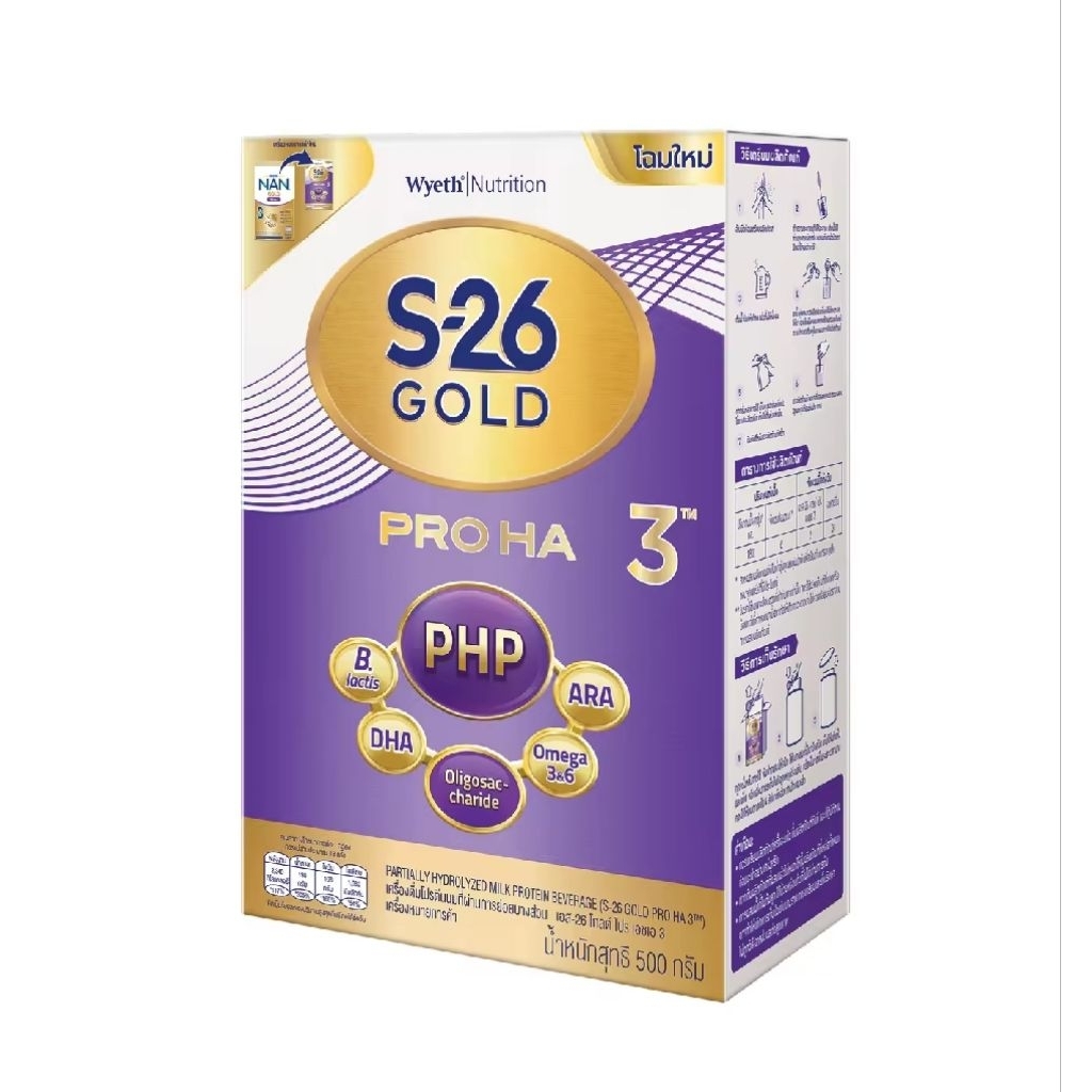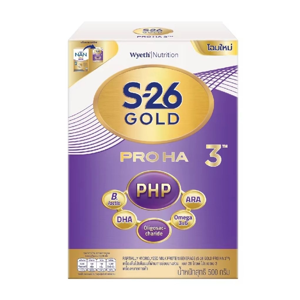 (กล่องสีขาวคาดม่วง) นมผงเอส-26 โกลด์โปร เอชเอ (HA) 3 ขนาด 3000 กรัม (500 กรัม x 6 กล่อง)