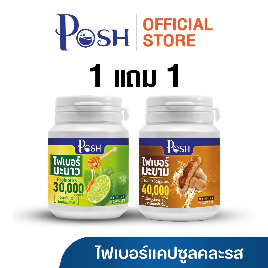 Posh Medica ไฟเบอร์มะนาว / มะขาม / แอปเปิ้ล / สับปะรด แคปซูล 20 cap 1แถม1 (คละรสชาติ)