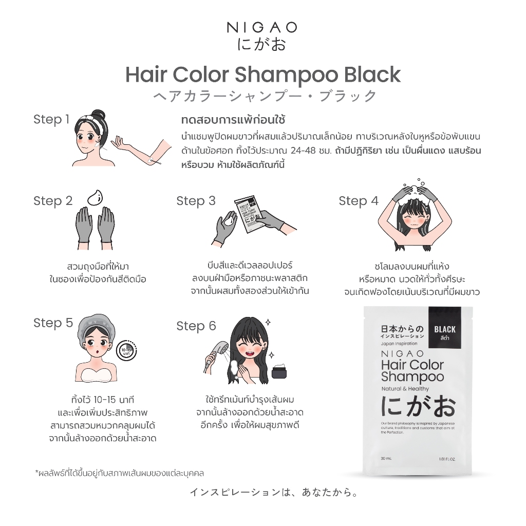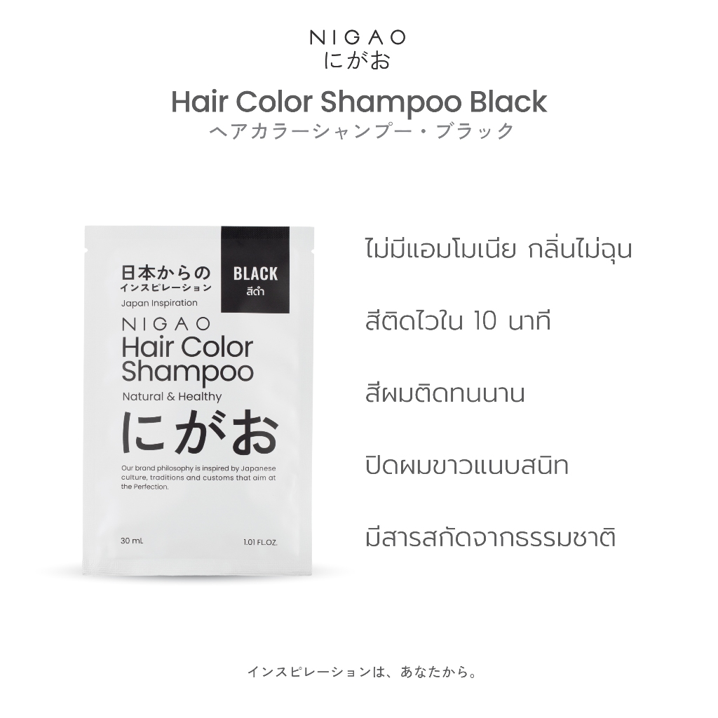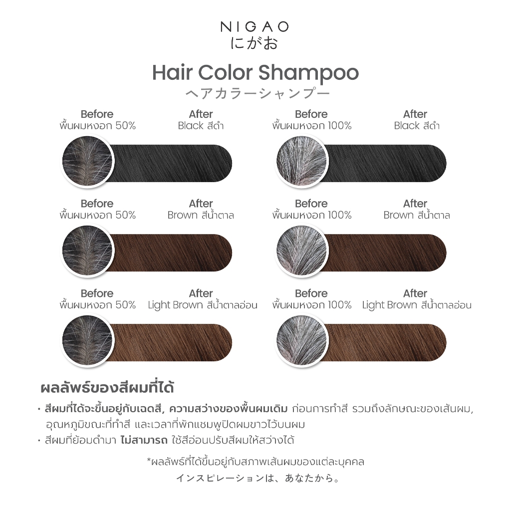 NIGAO Hair Color Shampoo | นิกาโอะ แชมพูเปลี่ยนสีผม ปิดผมขาว 30 mL