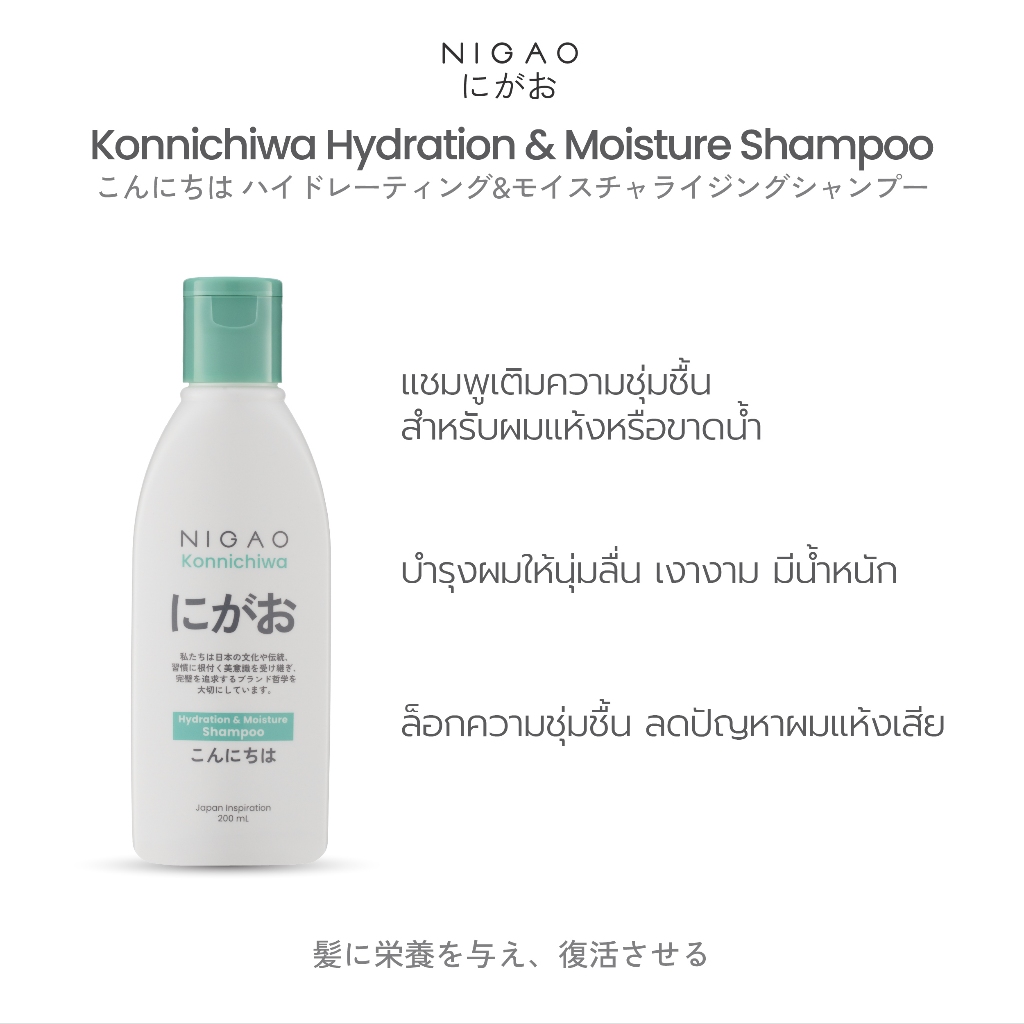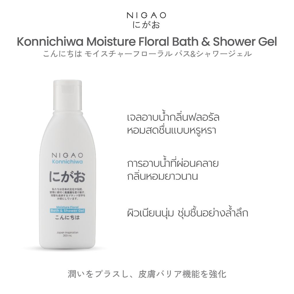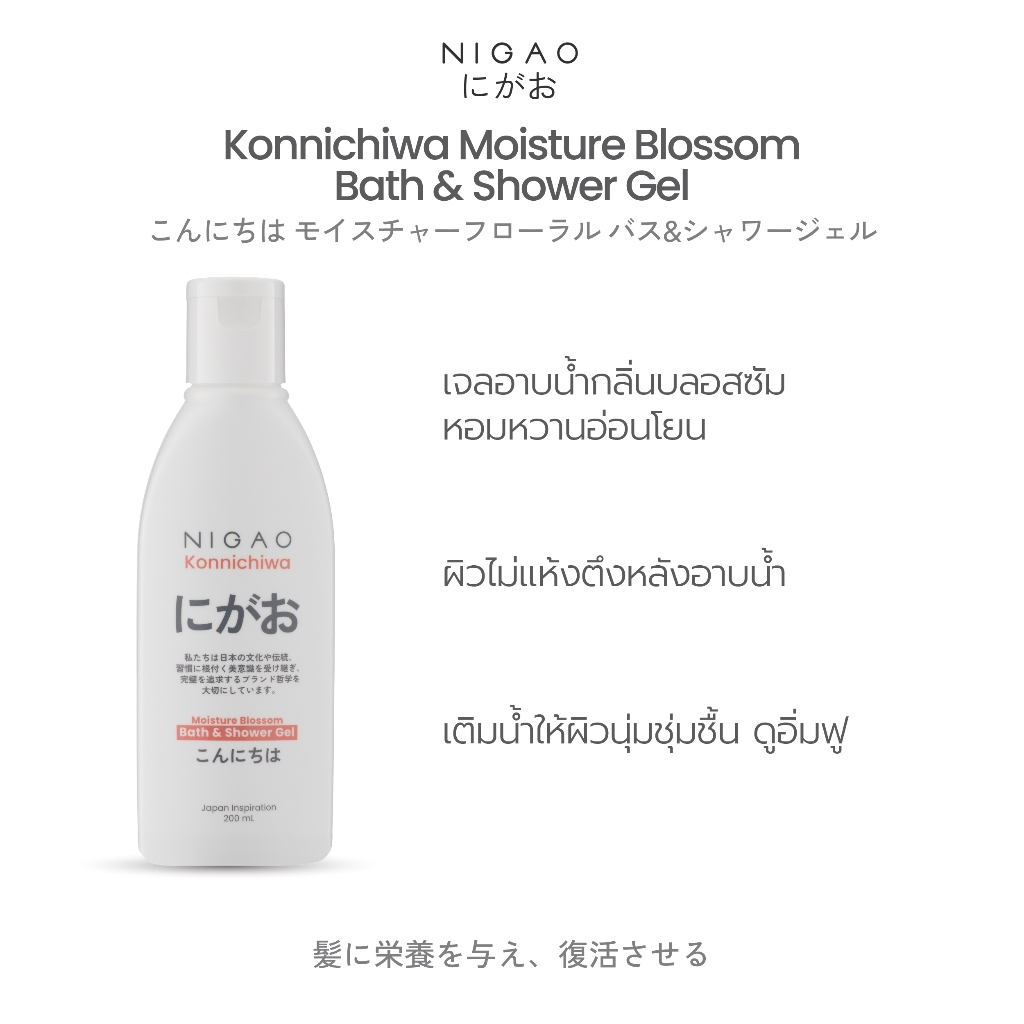 NIGAO Konnichiwa I นิกาโอะ คอนนิจิวะ ผลิตภัณฑ์แชมพูและเจลอาบน้ำ 200 mL