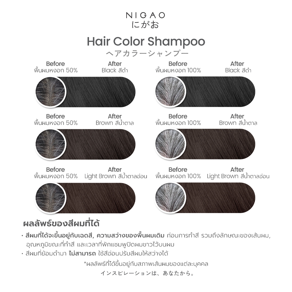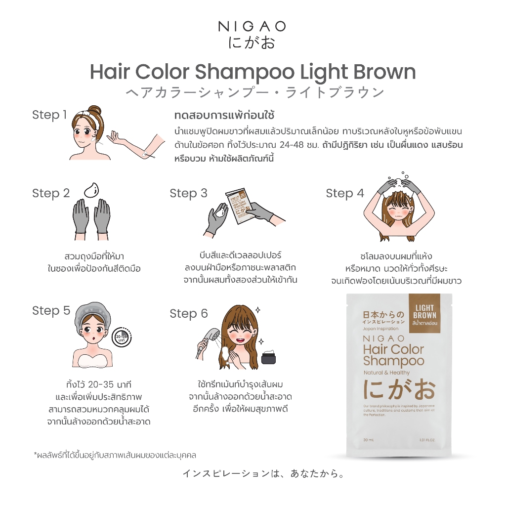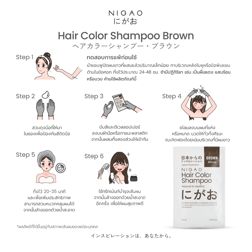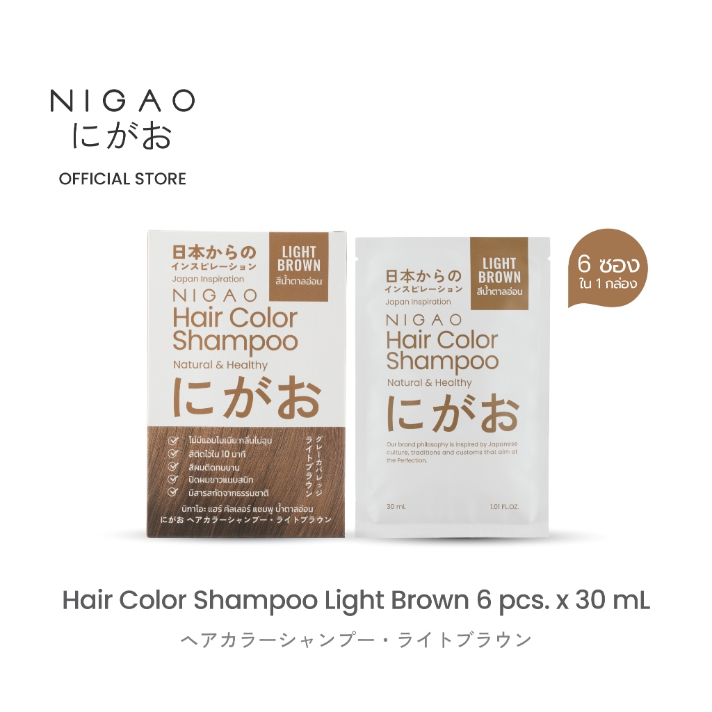 [แบบกล่อง] NIGAO Hair Color Shampoo | นิกาโอะ แชมพูเปลี่ยนสีผม ปิดผมขาว 30 mL x 6 ซอง