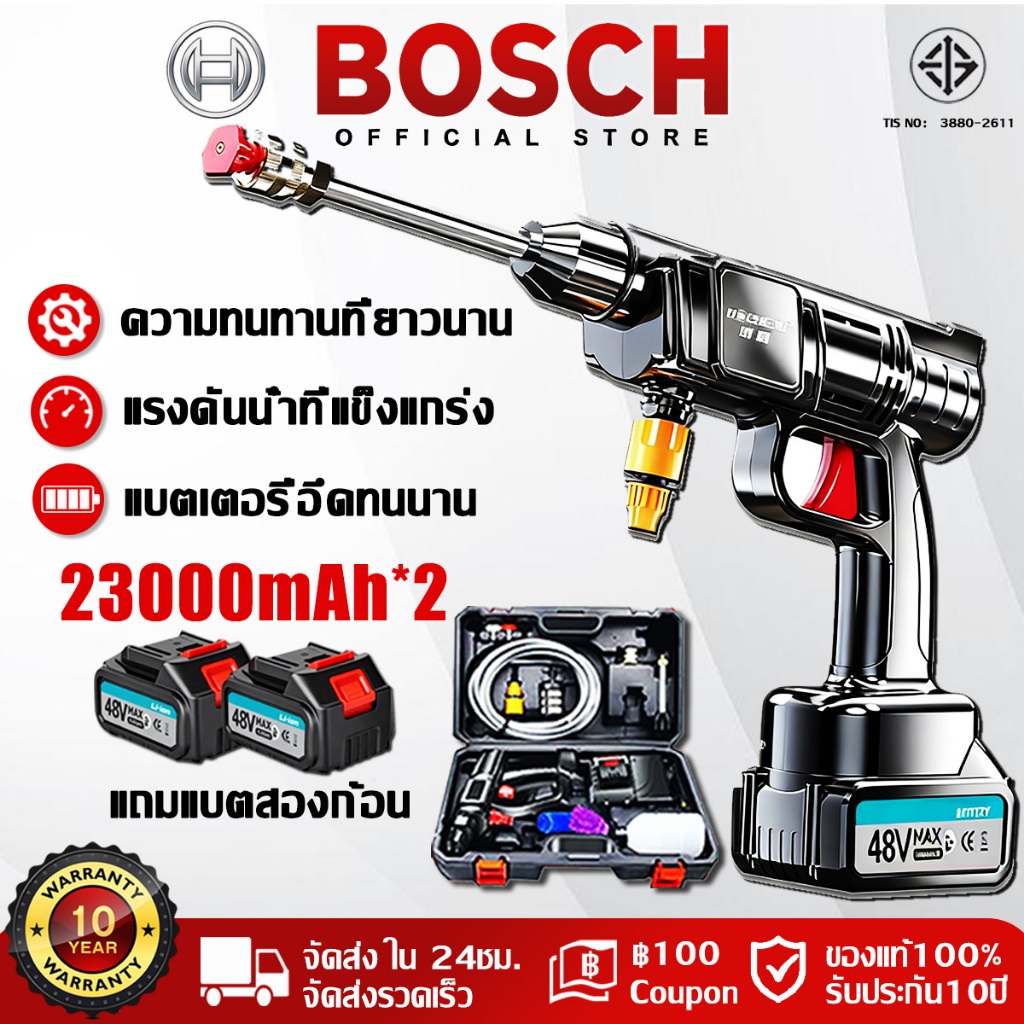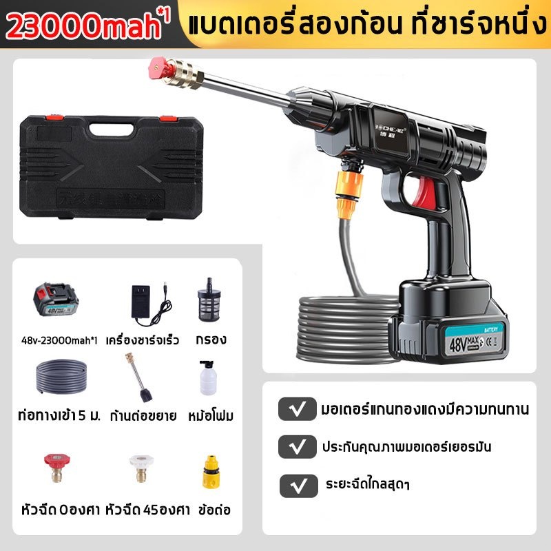 🔥รับประกัน 10 ปี🔥 เครื่องฉีดน้ำแรงดันสูง 23000mAh แรงฉีดไกลถึง80เมตร มีแบต2ก้อน ปืนฉีดน้ำแรงดันสูง ปืนฉีดน้ำไฟฟ้า