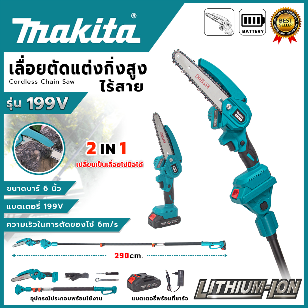 MAKITA เลื่อยโซ่ตัดแต่งกิ่งไร้สาย ขนาด 6"นิ้ว 2IN1 รุ่น 199V สำหรับตัดแต่งกิ่งไม้ หรือตัดไม้ในสวนในไร่ 💯🏆🔥 (LPS)