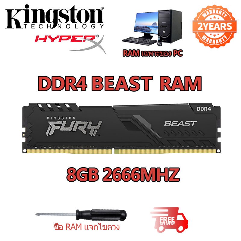 Kingston Hyperx Fury RAM DDR4 4GB 8GB 16GB แรม 2133Mhz 2400Mhz 2666Mhz 3200Mhz 3600Mhz DIMM PC 1.2V รักษาหัวใจไว้ 3 ปี