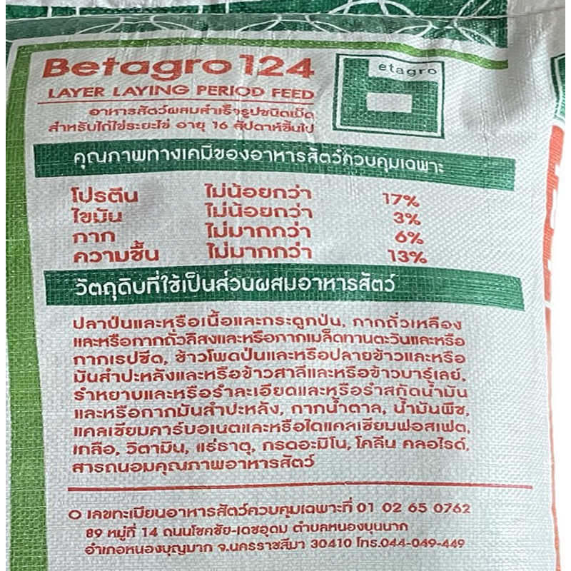 เบทาโกร 124 อาหารไก่ไข่ระยะไข่ อายุ 16 สัปดาห์ขึ้นไป ชนิดเม็ด บรรจุ 15 กิโลกรัม