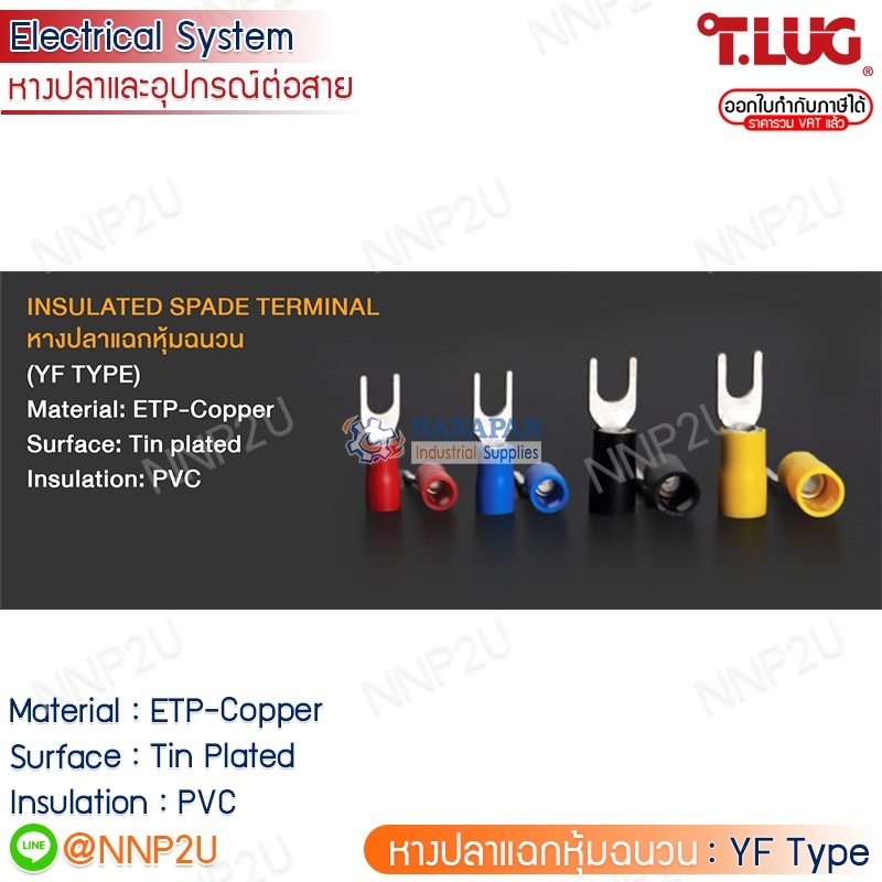 TLUG หางปลาแฉกหุ้มฉนวน (YF Type) เบอร์ 1.5-3S, 1.5-4S, 1.5-5S, 2.5-3S, 2.5-4S, 2.5-5S, 4-4, 4-5, 6-4S, 6-5S, 6-6