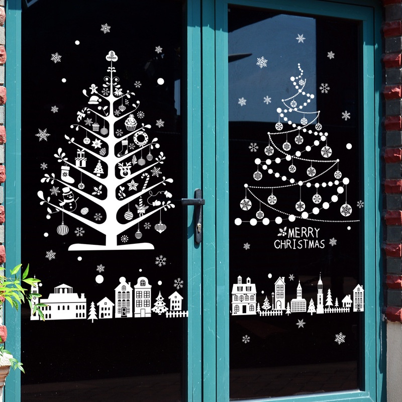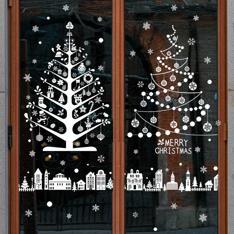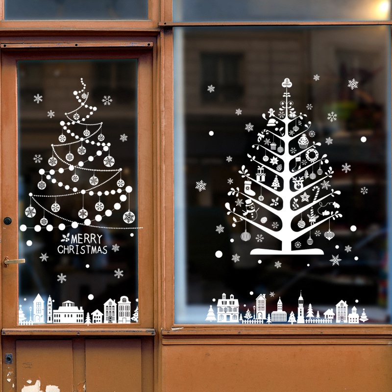 [wuxiang] สติกเกอร์ ลายต้นคริสต์มาส ปีใหม่ กวาง เกล็ดหิมะ สีขาว สําหรับติดตกแต่งผนัง กระจก หน้าต่าง