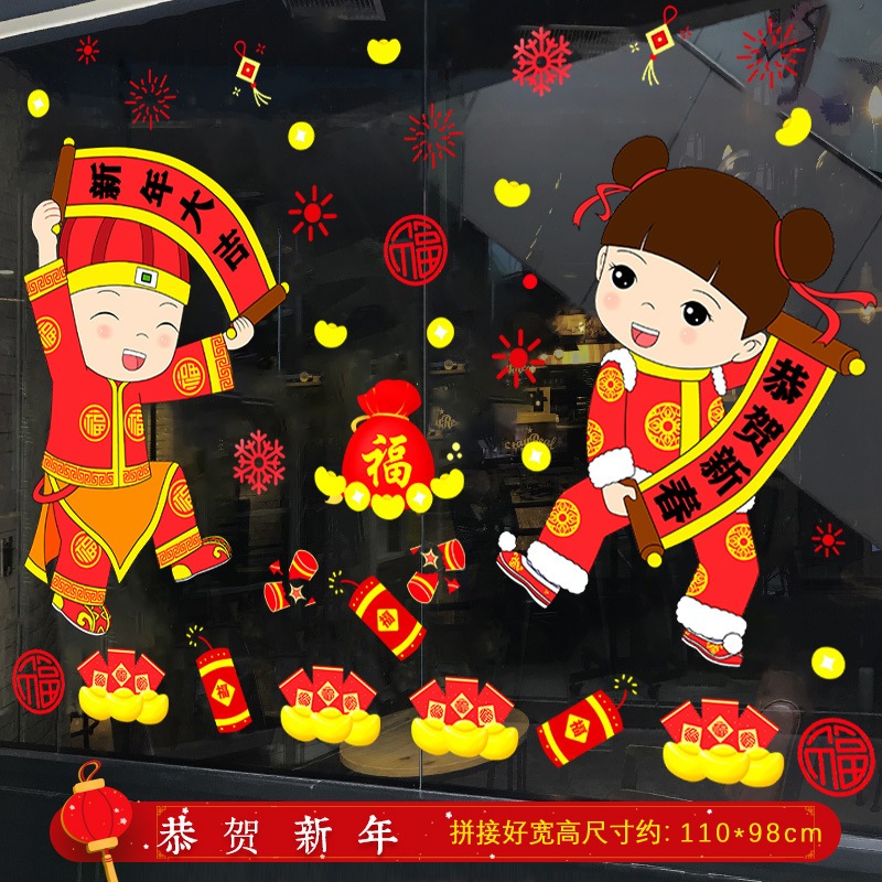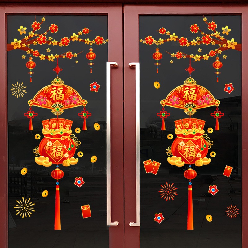 [wuxiang] สติกเกอร์สองด้าน สําหรับติดตกแต่งกระจกหน้าต่าง เทศกาลปีใหม่จีน
