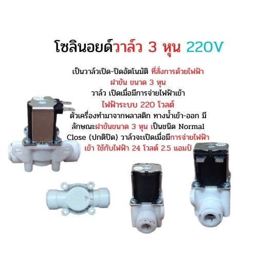 โซลินอยด์วาล์วน้ำ 220V 3 หุน แบบเสียบ