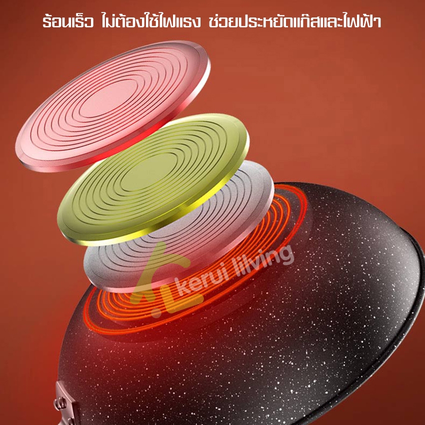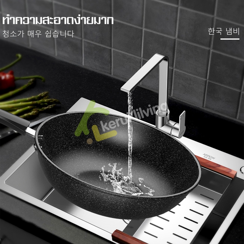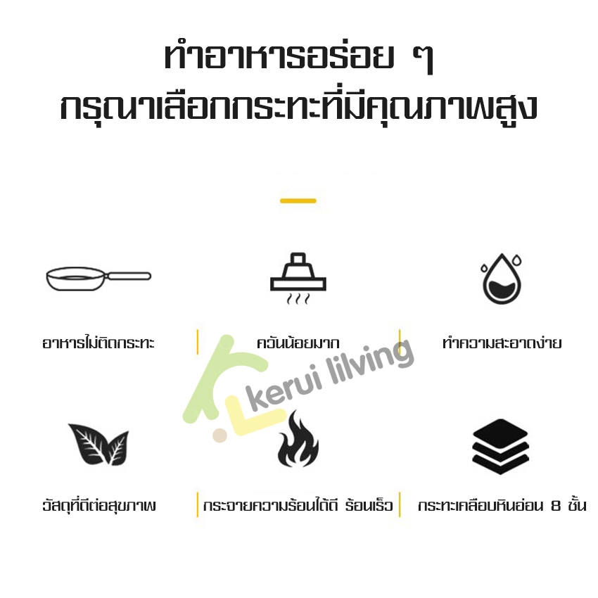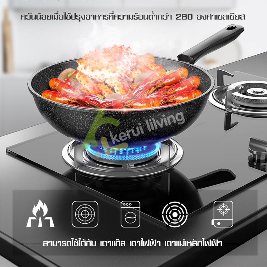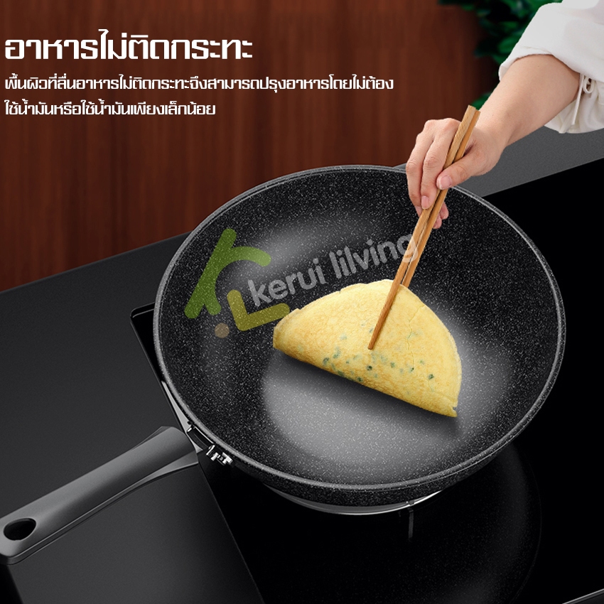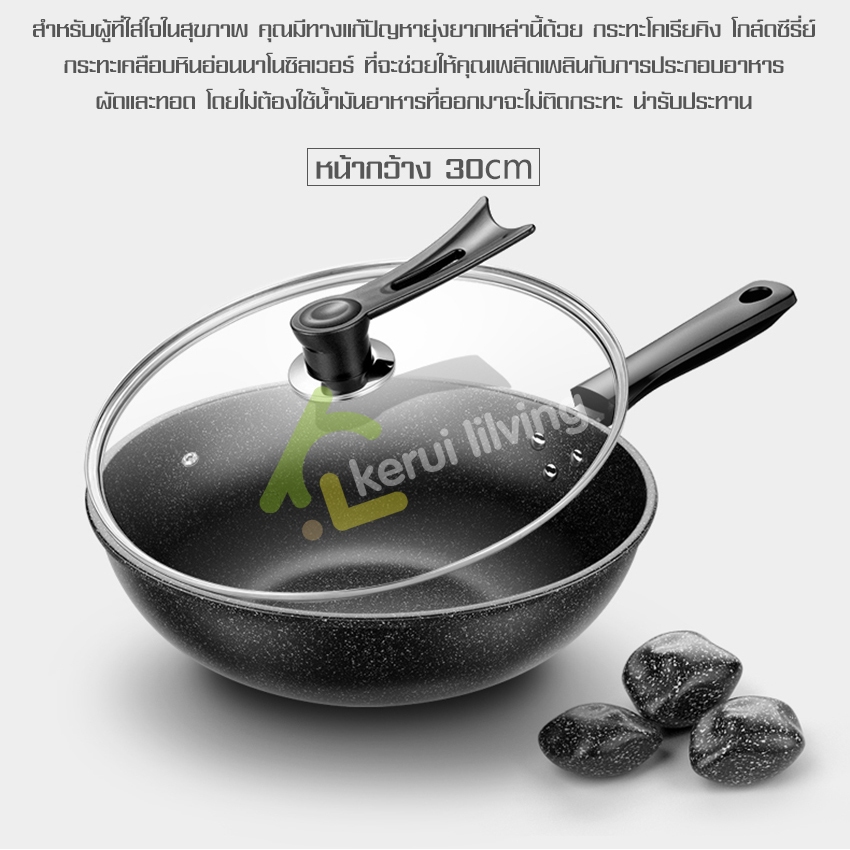 EQUAL กระทะเทฟล่อน 30 cm 32 cm กระทะเคลือบหินอ่อน ทรงลึก พร้อมฝา+ตะหลิว