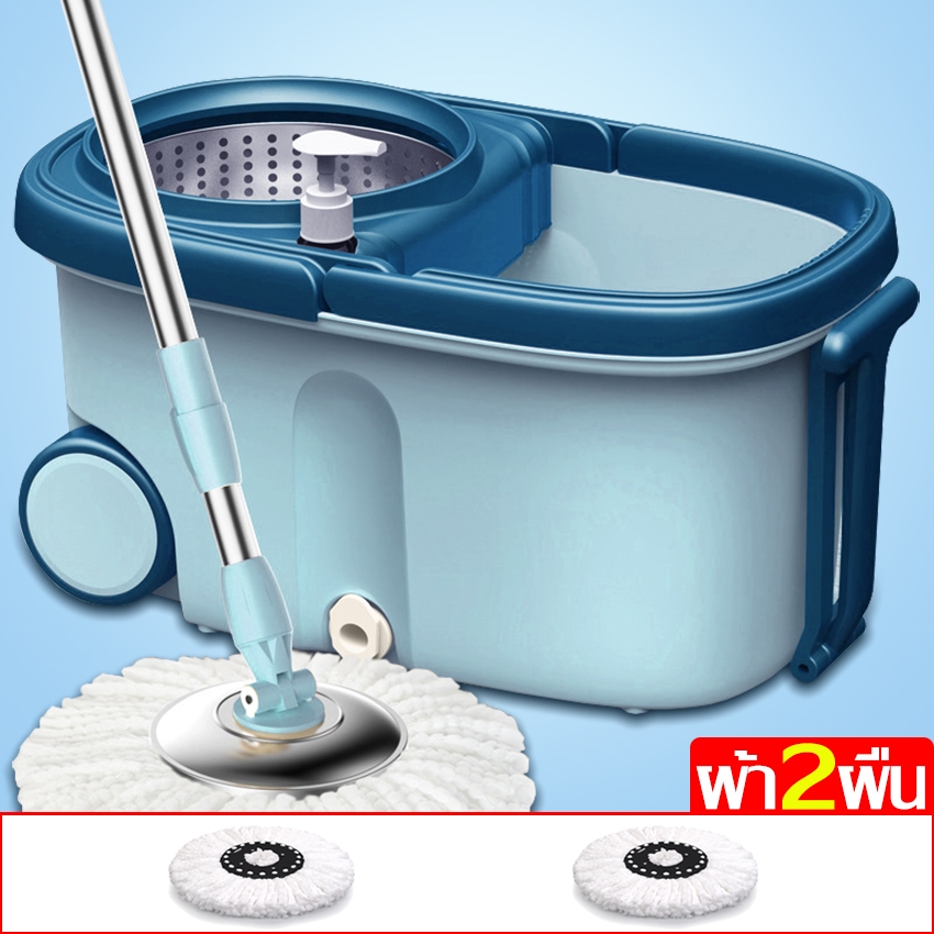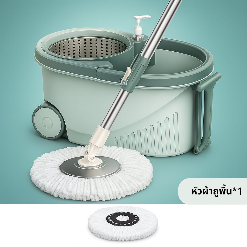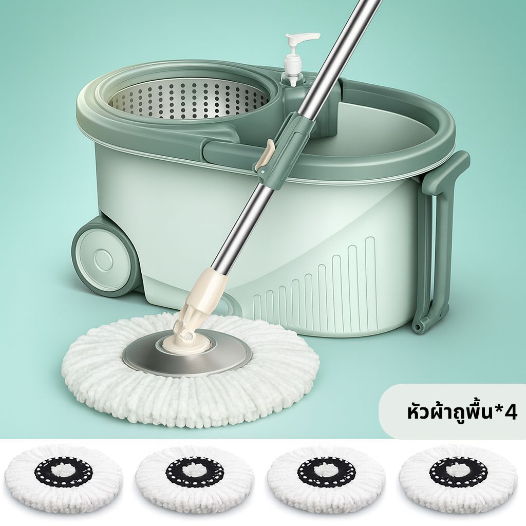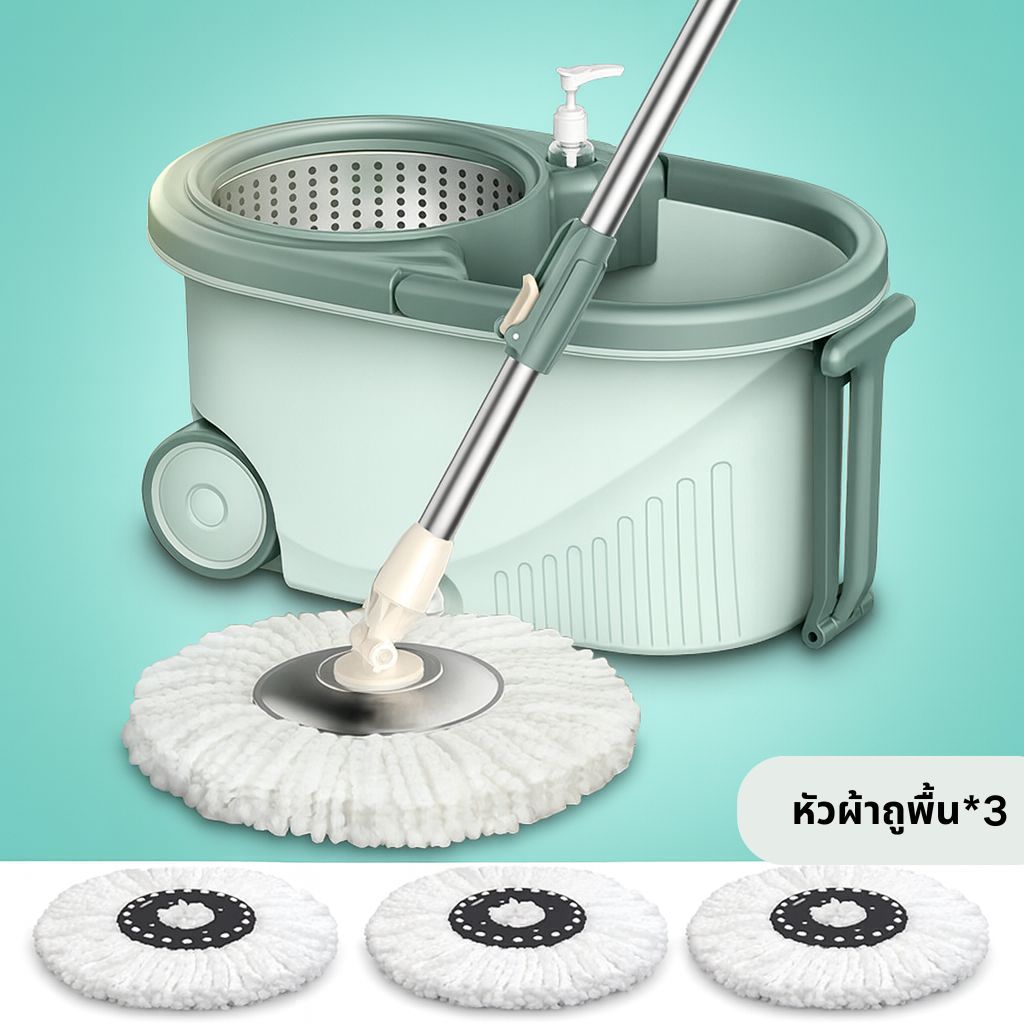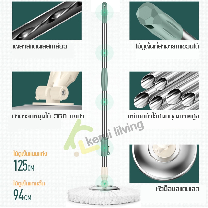 EQUAL ไม้ถูหัวสแตนเลส+ถังปั่นสแตนเลส หมุนได้ 360 องศา ชุดถังปั่น ไม้ถูพื้น ม๊อบถูพื้น มีล้อ มีรูระบายน้ำ