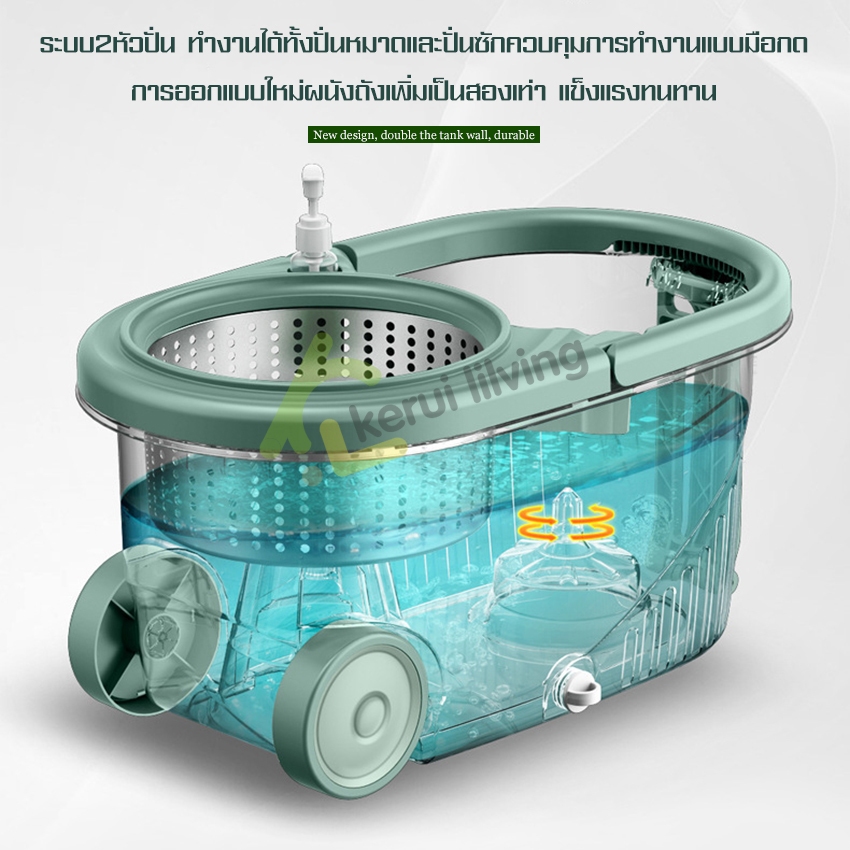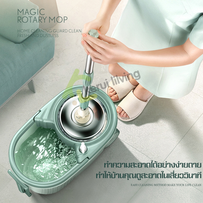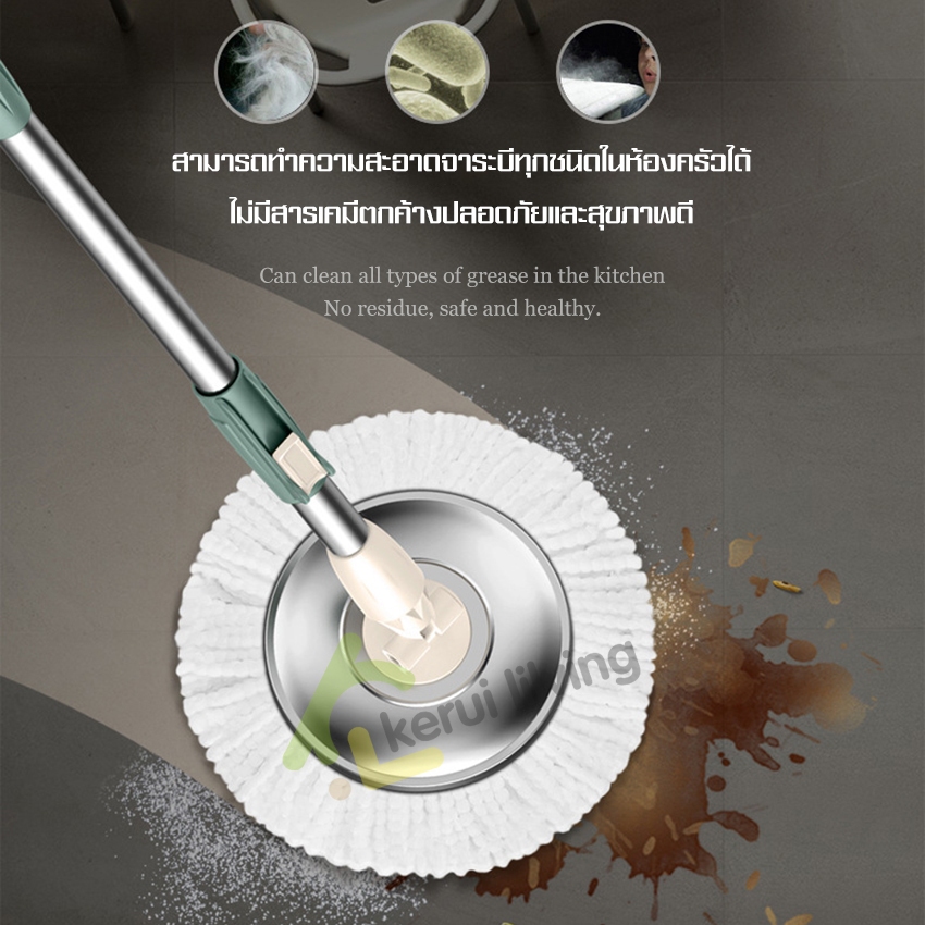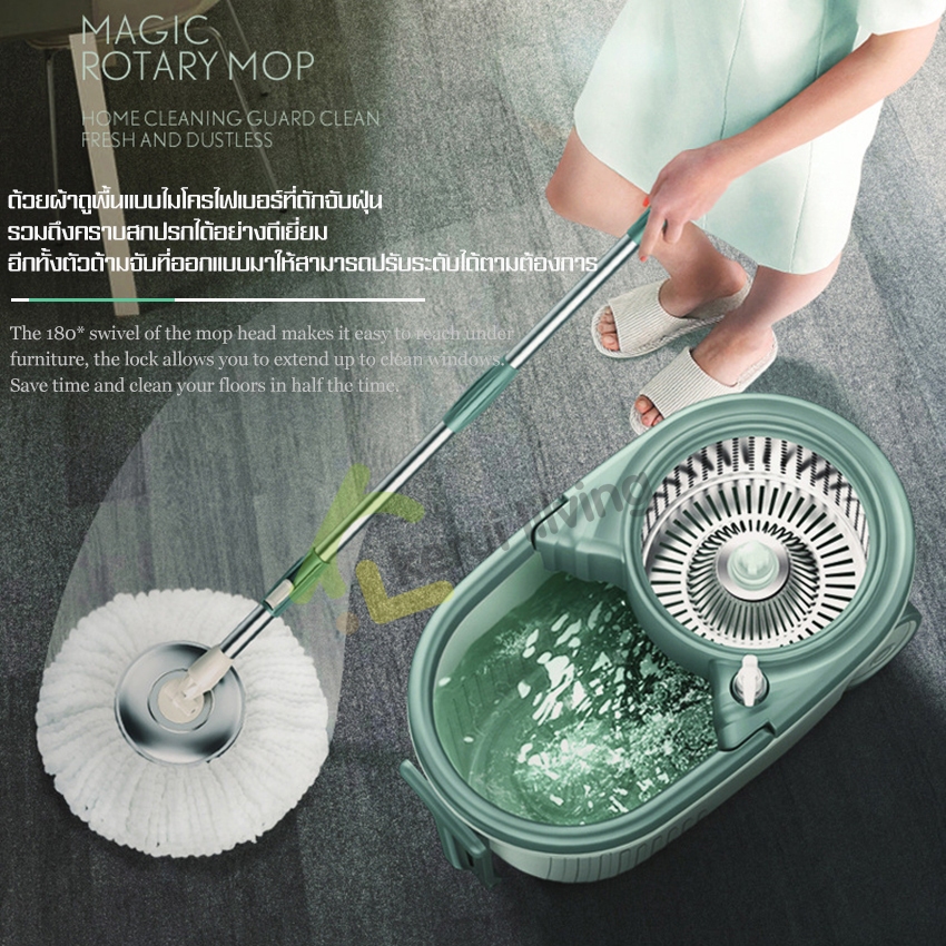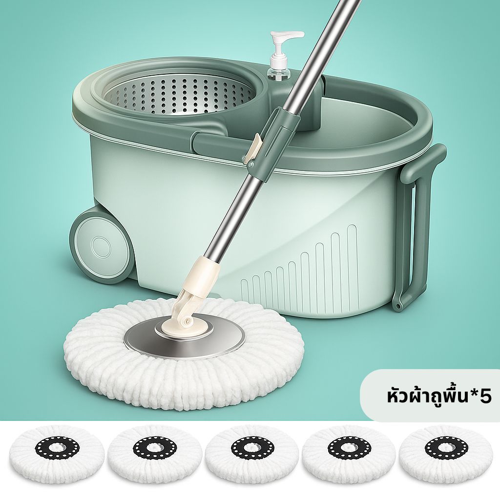 EQUAL ไม้ถูหัวสแตนเลส+ถังปั่นสแตนเลส หมุนได้ 360 องศา ชุดถังปั่น ไม้ถูพื้น ม๊อบถูพื้น มีล้อ มีรูระบายน้ำ