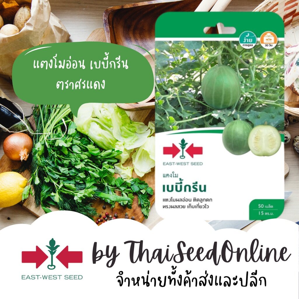 GGEW เมล็ดพันธุ์ซฟ แตงโมอ่อน แตงโมอ่อนเบบี้กรีน 50 เมล็ด ตราศรแดง Watermelon