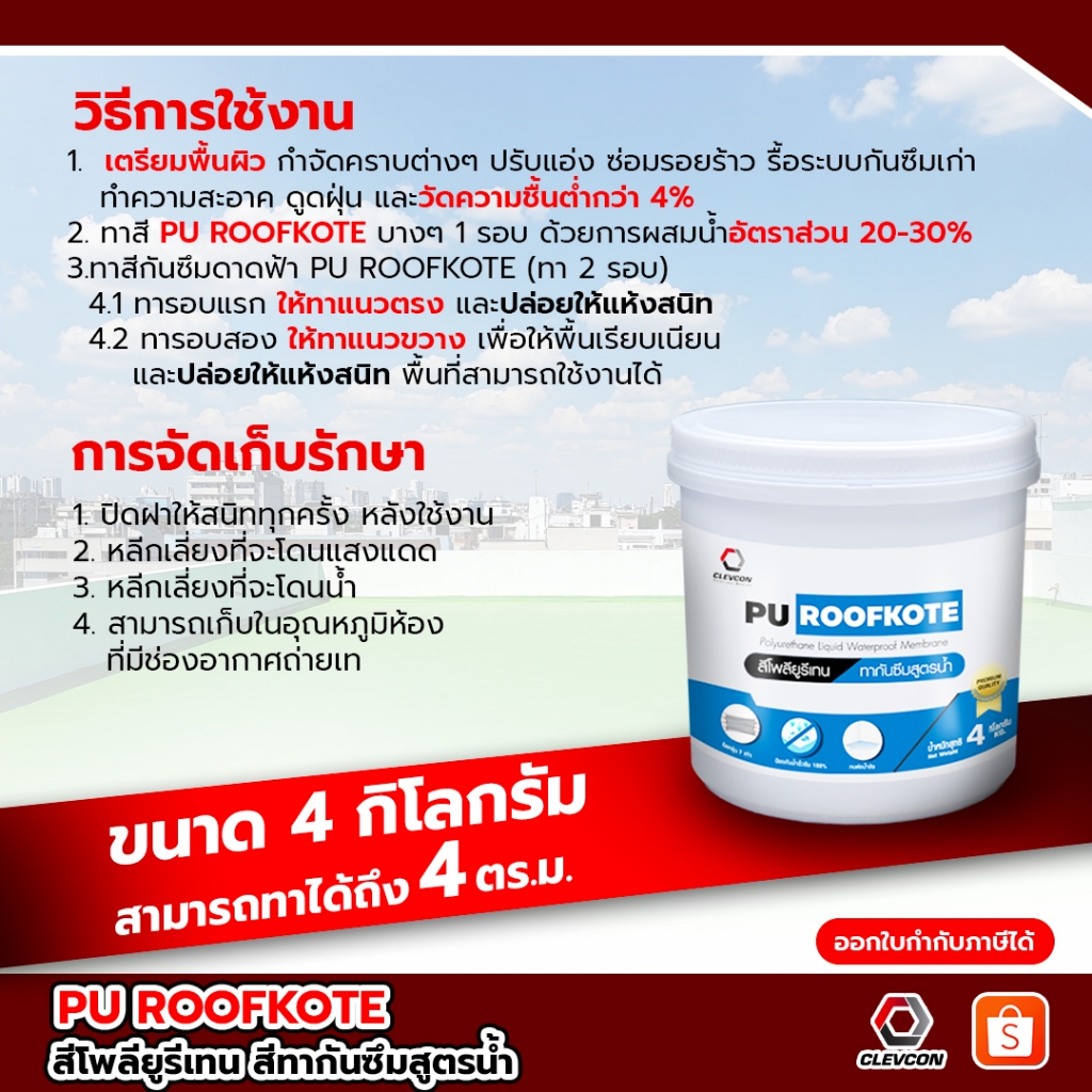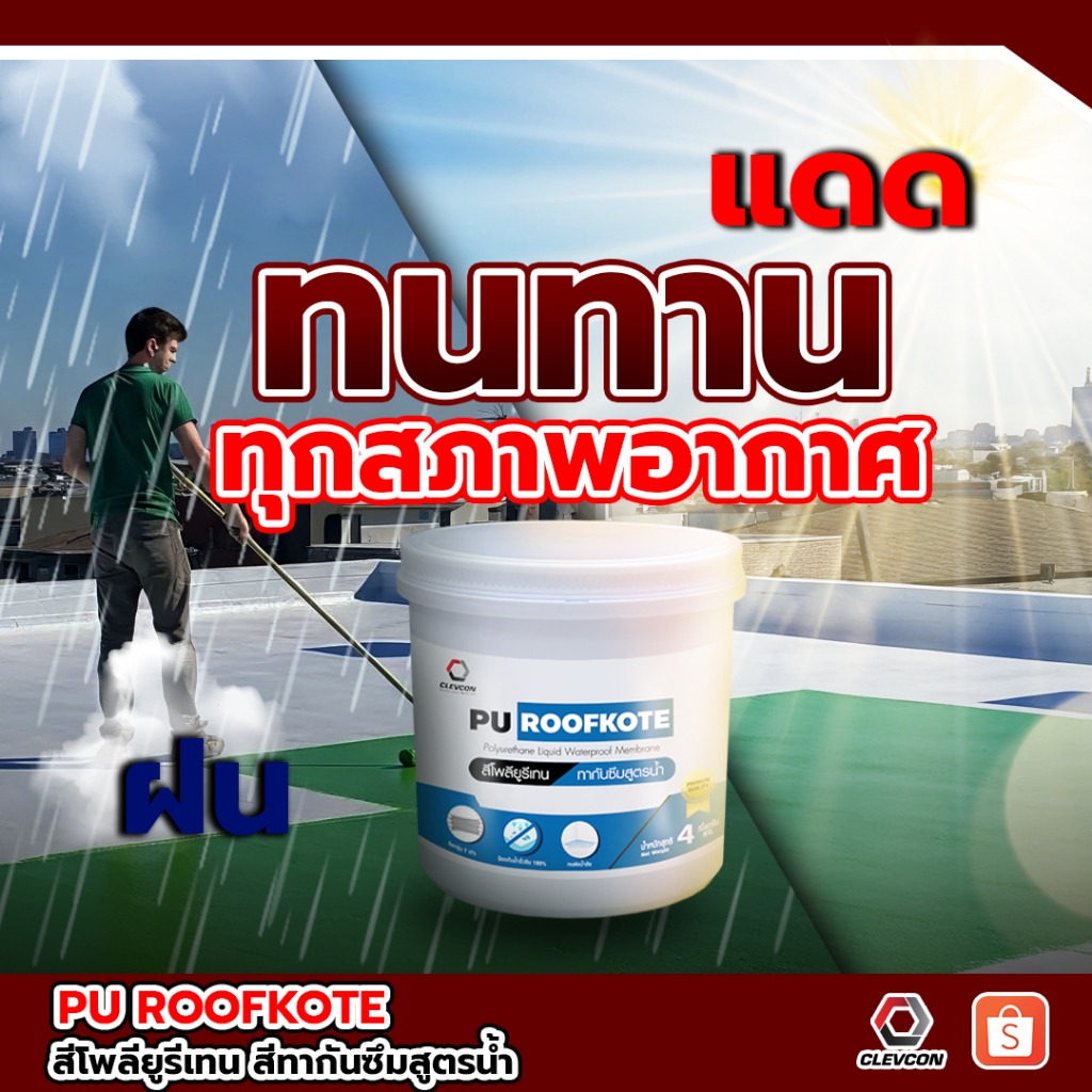 Pu Roofkote สีโพลียูรีเทนทากันซึมสูตรน้ำ ทาหลังคา ดาดฟ้า สีทาบ้าน ผนังอาคาร ทนทานยืดหยุ่น 4kg./ถัง