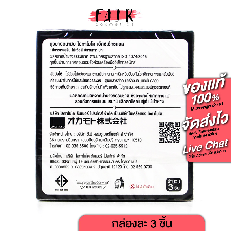 [3 กล่อง]ถุงยางอนามัย Okamoto XXL โอกาโมโต เอ็กซ์เอ็กซ์แอล ถุงยาง ผิวเรียบ ปลายเป็นกระเปาะ