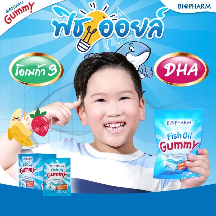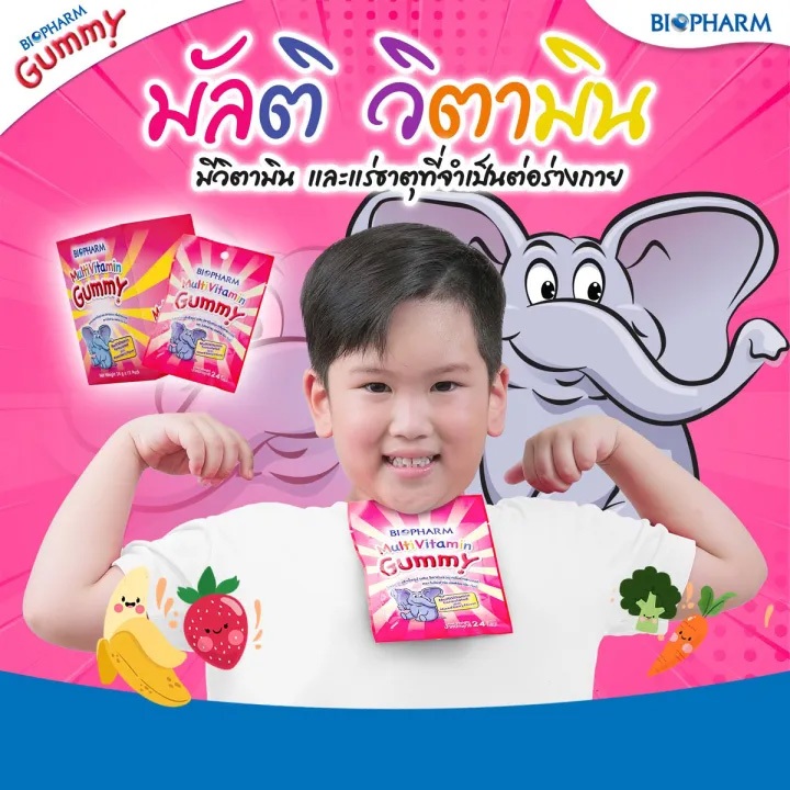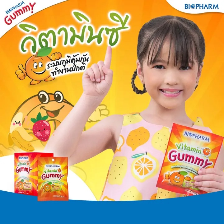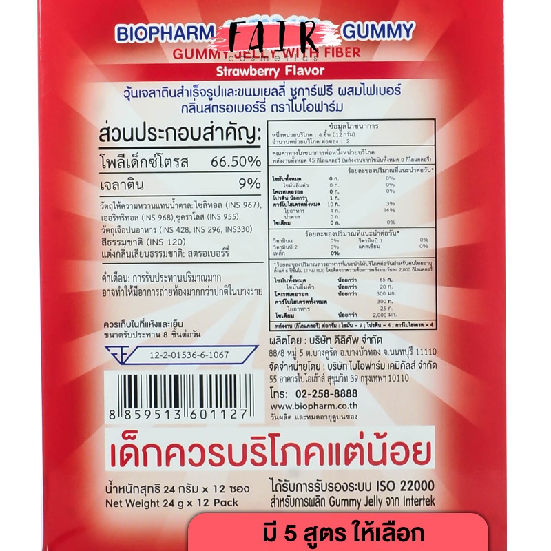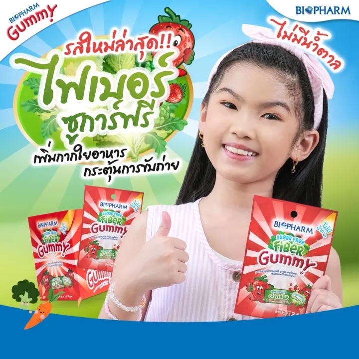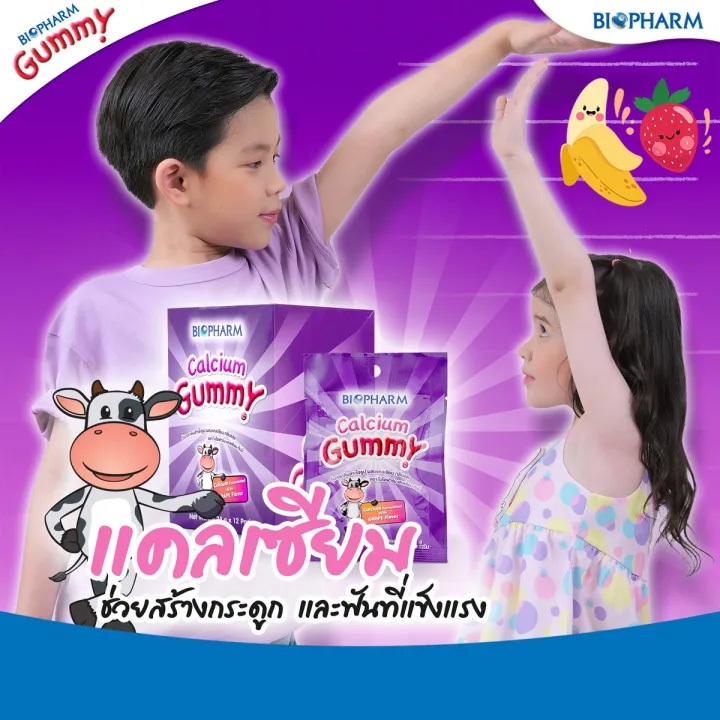 [ยกกล่อง 12 ซอง] Biopharm Vitamin C/Multivitamin/Calcium/Fish Oil/Fiber Gummy ไบโอฟาร์ม วิตามินซี/มัลติวิตามิน/แคลเซียม/