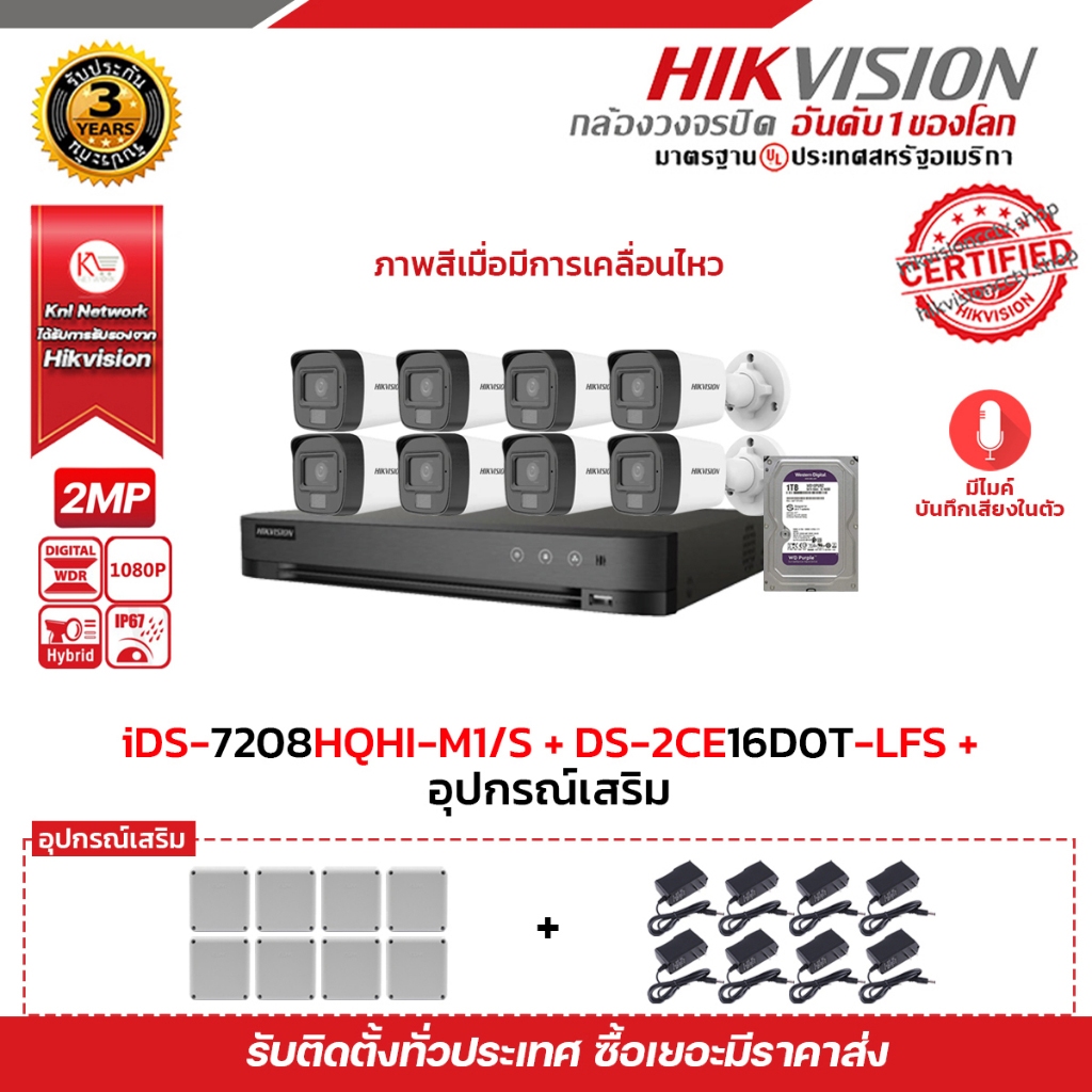 HIKVISION ชุดกล้องวงจรปิด 4ตัว/8ตัว/16ตัว DS-2CE16D0T-LFS มีไมค์บันทึกเสียง