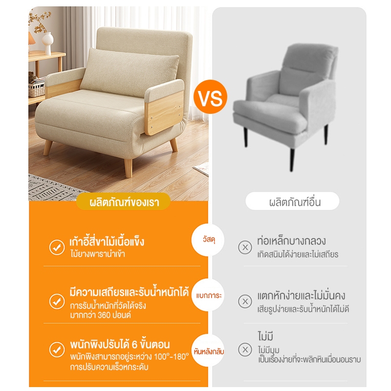 【มีสินค้า🚀จัดส่งจากกรุงเทพ】โซฟา ปรับนอน โซฟาอพาร์ทเมนท์ เตียงโซฟาพับ modern 4ฟุต 5ฟุต ด้วยการ หมอน2ใบ