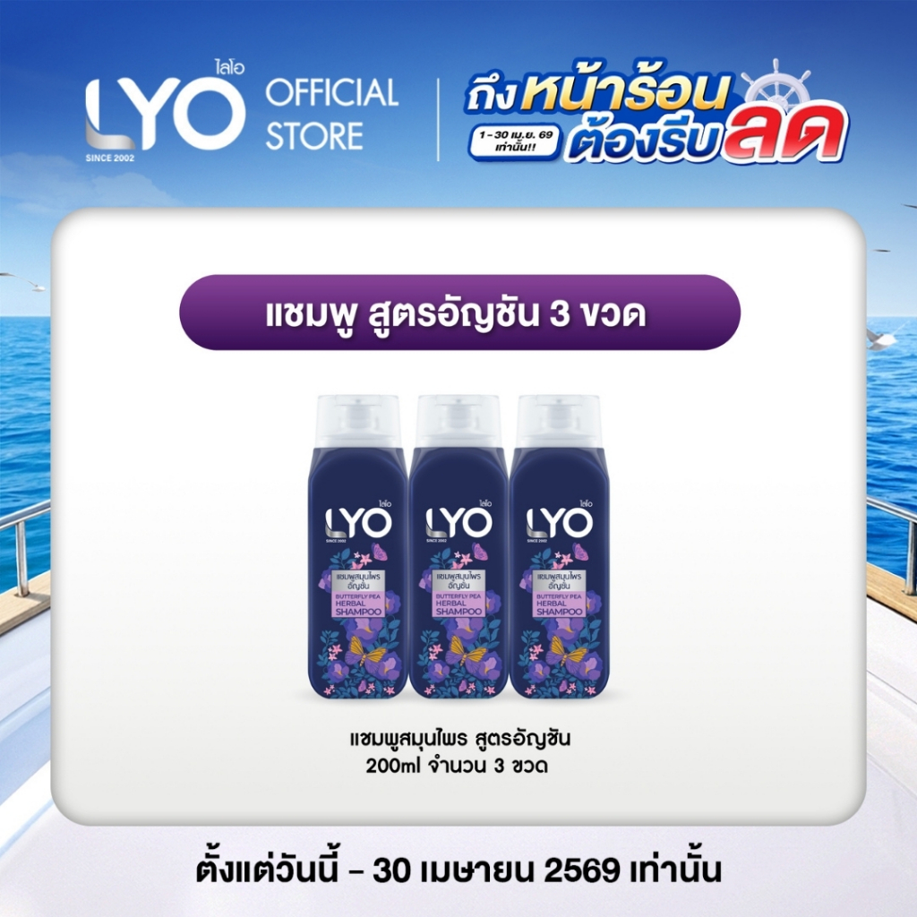 [แพ็ค 3 ชิ้น] LYO แชมพู สูตรอัญชัน - ผมนุ่มสลวย เงางาม มีน้ำหนัก 200ml