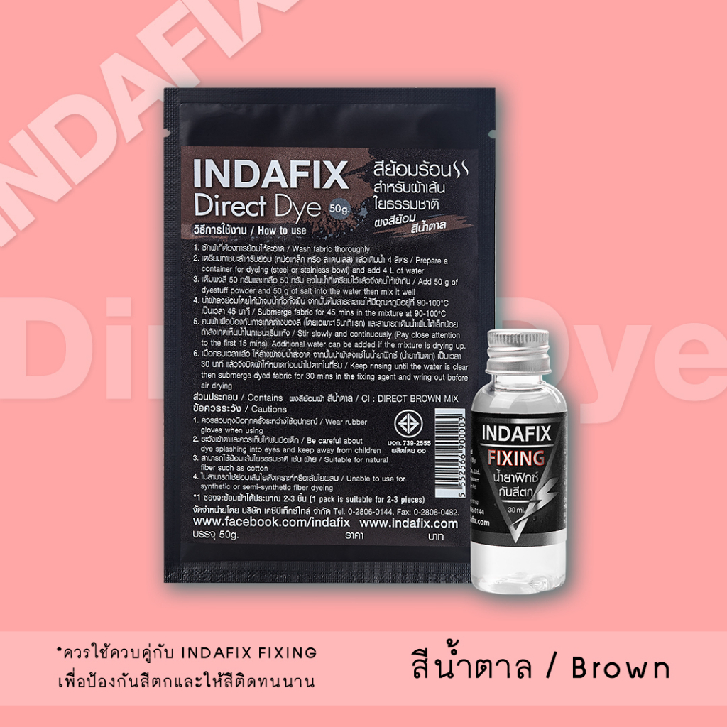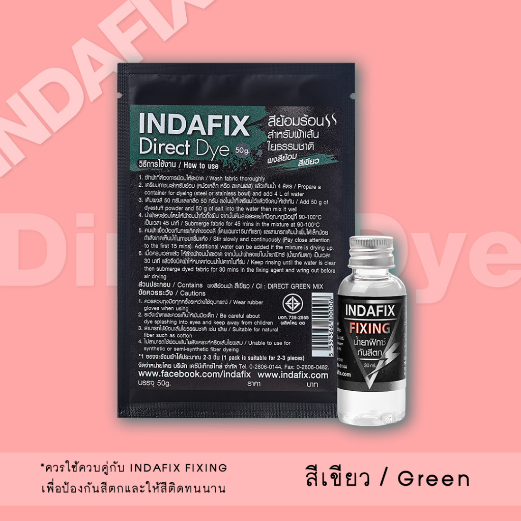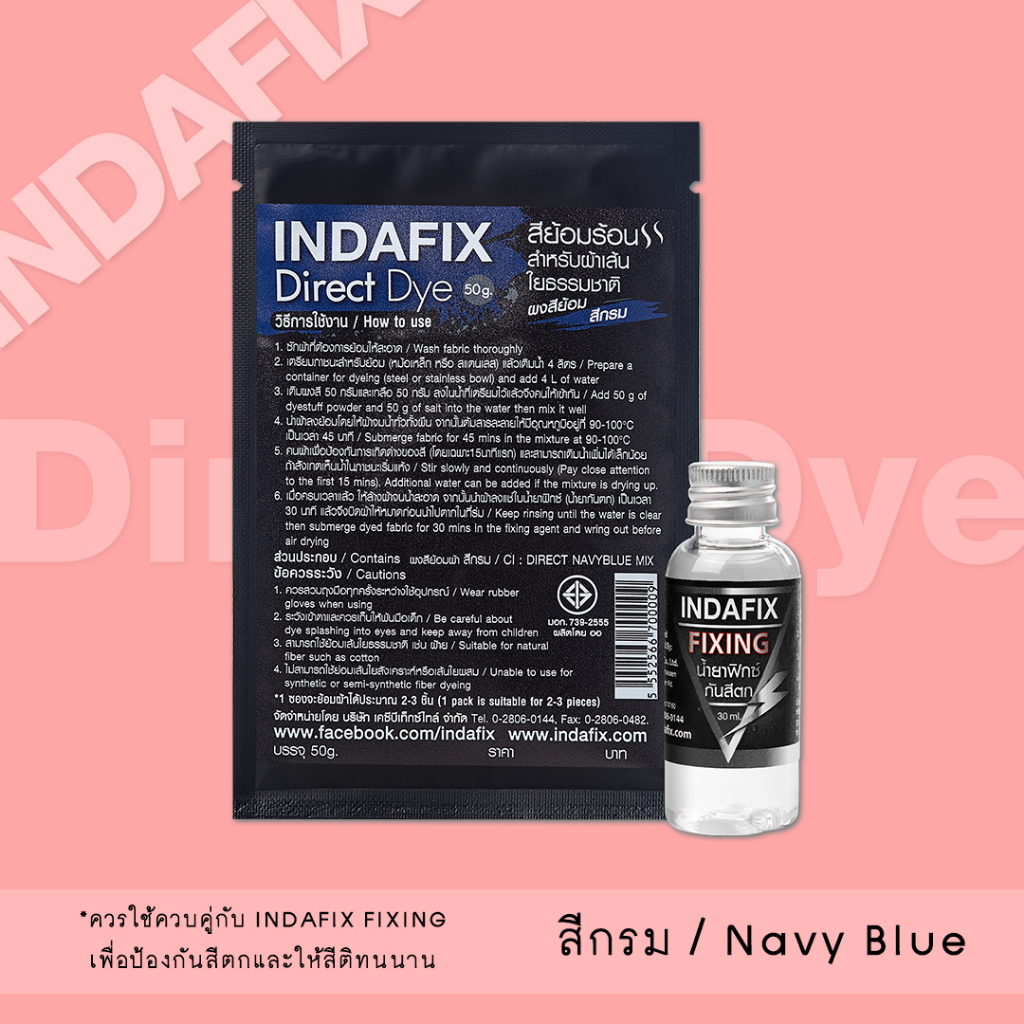 สีย้อมผ้า INDAFIX สำหรับย้อมร้อนเส้นใยธรรมชาติขนาด 50g (สำหรับเส้นใยธรรมชาติที่ใช้ความร้อนในการย้อม)