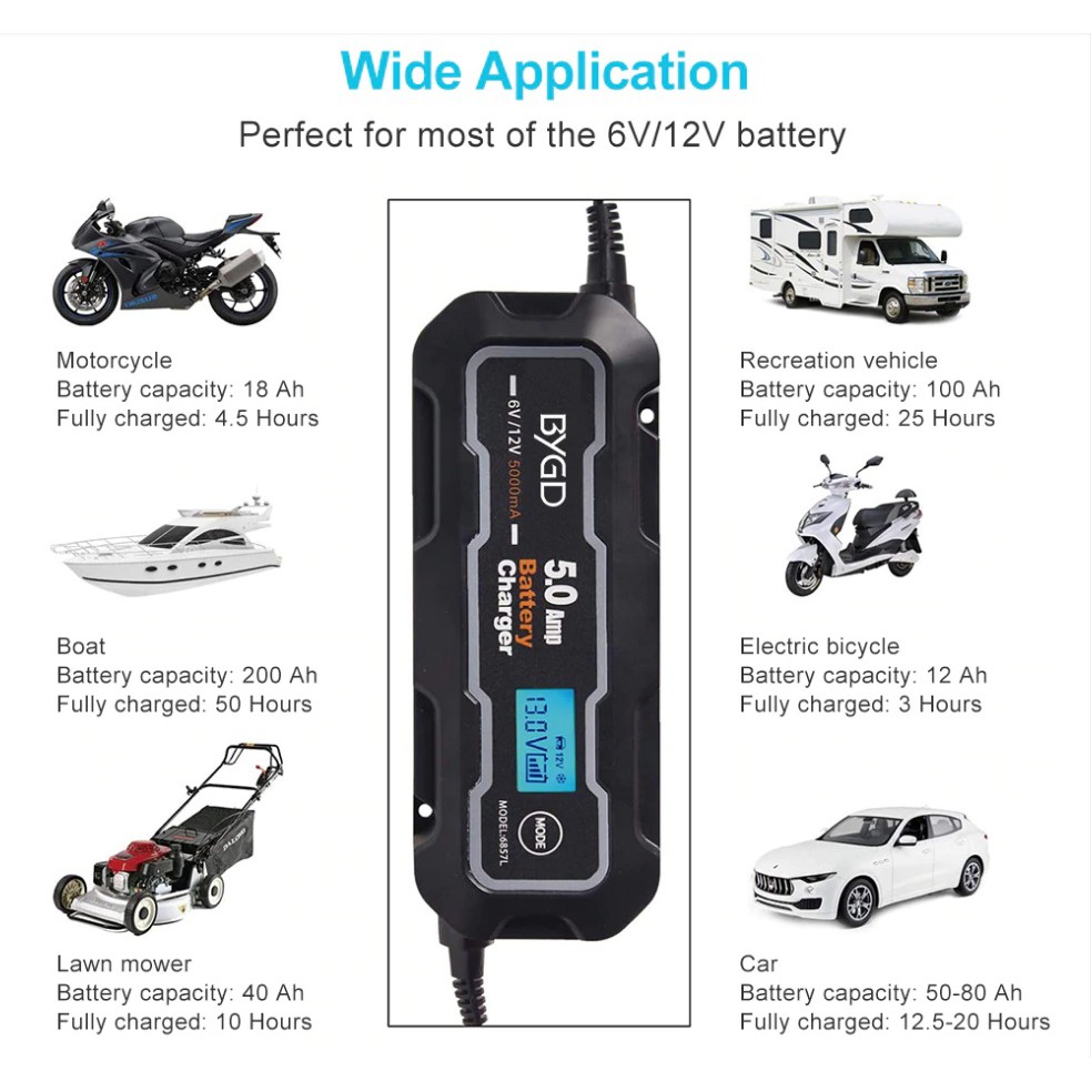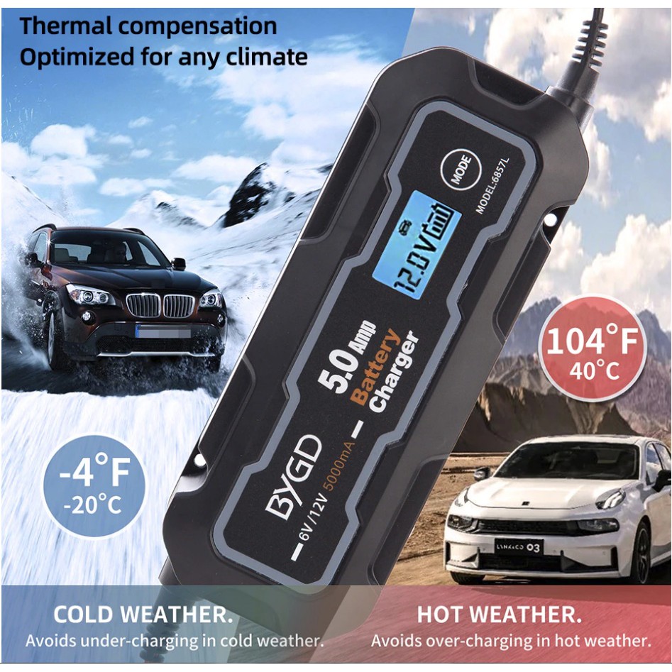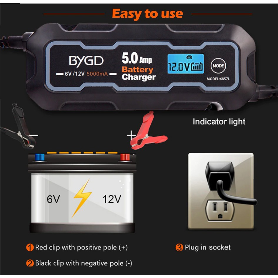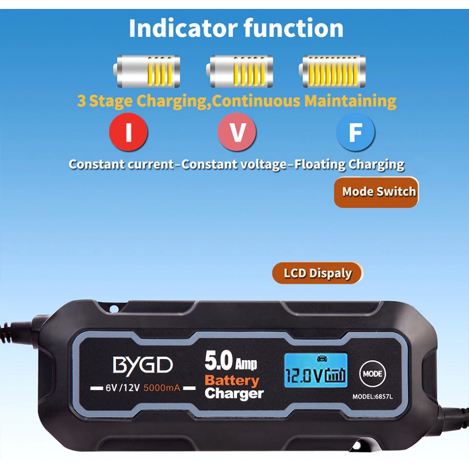 เครื่องชาร์จแบตเตอรี่ BYGD Smart Battery Charger 6V-12V 5000mA 6857L