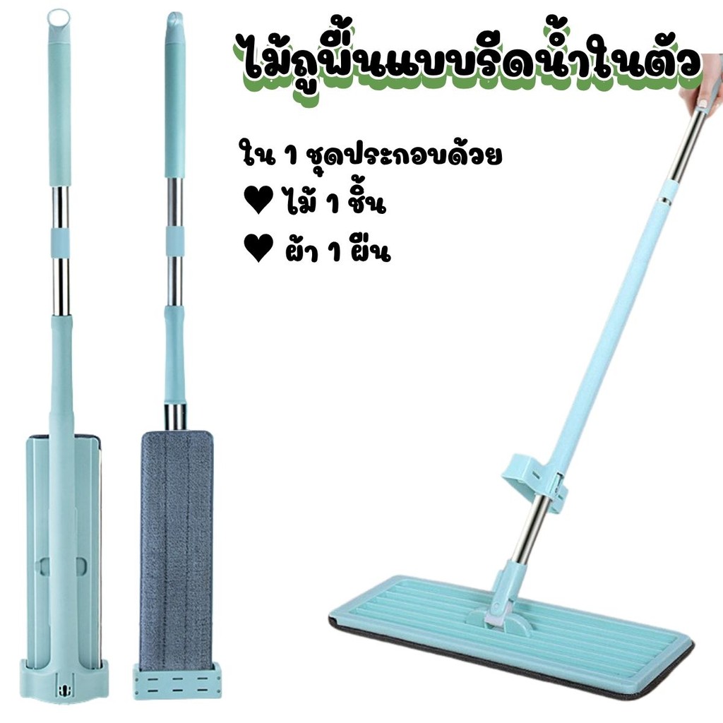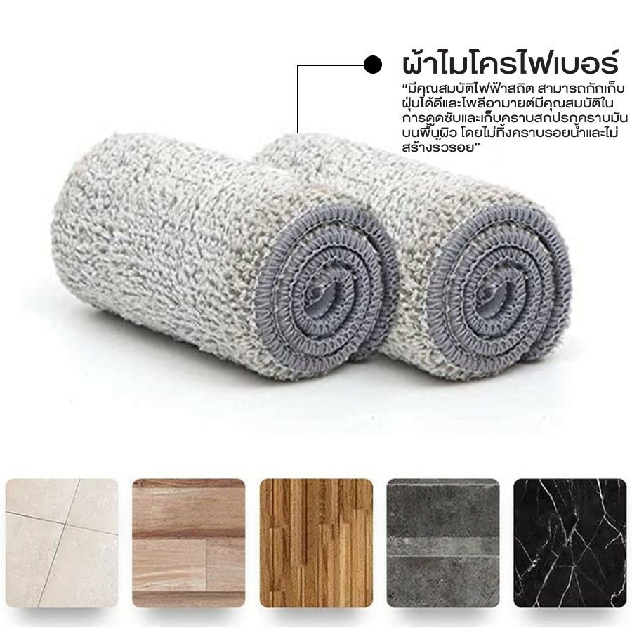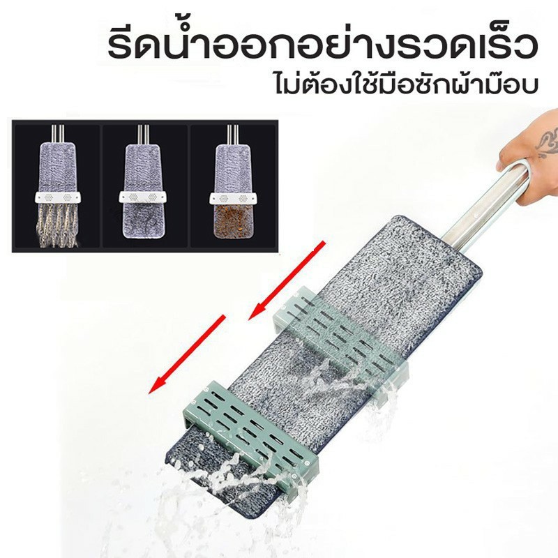 ไม้ถูพื้นแบบรีดน้ำและฝุ่นผงในตัว หมุน 360 องศา ไม้ถูพื้นแบบบิด ผ้าถอดเปลี่ยนได้
