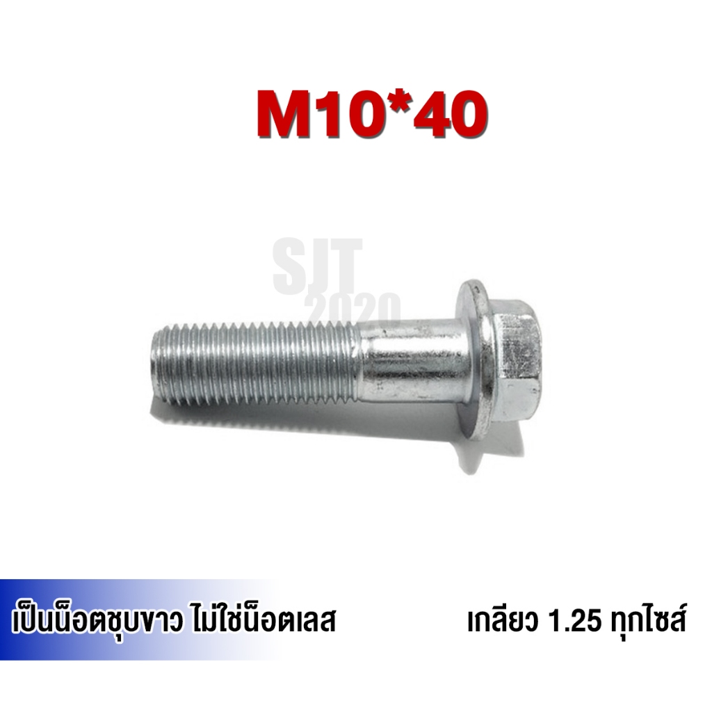 น๊อตหัวติดแหวน สกรูติดแหวน 10 มิล ( M10 เบอร์13 ) สกรูหกเหลี่ยมติดแหวนความยาว 25มิล - 150มิล เหล็กชุบซิงค์ขาว