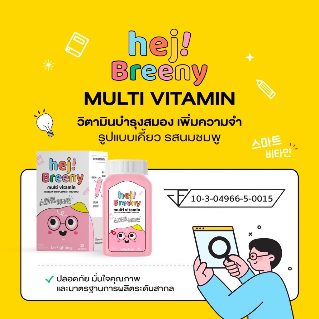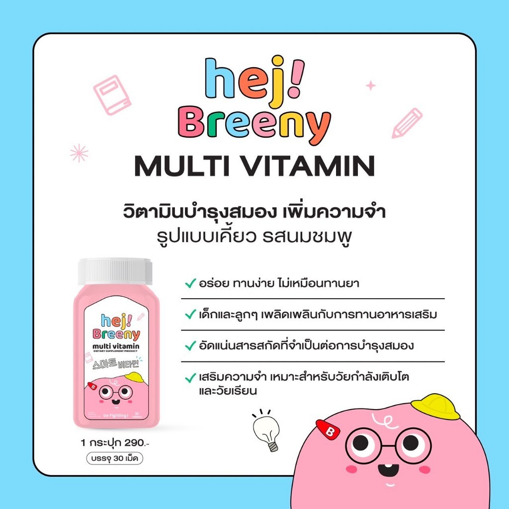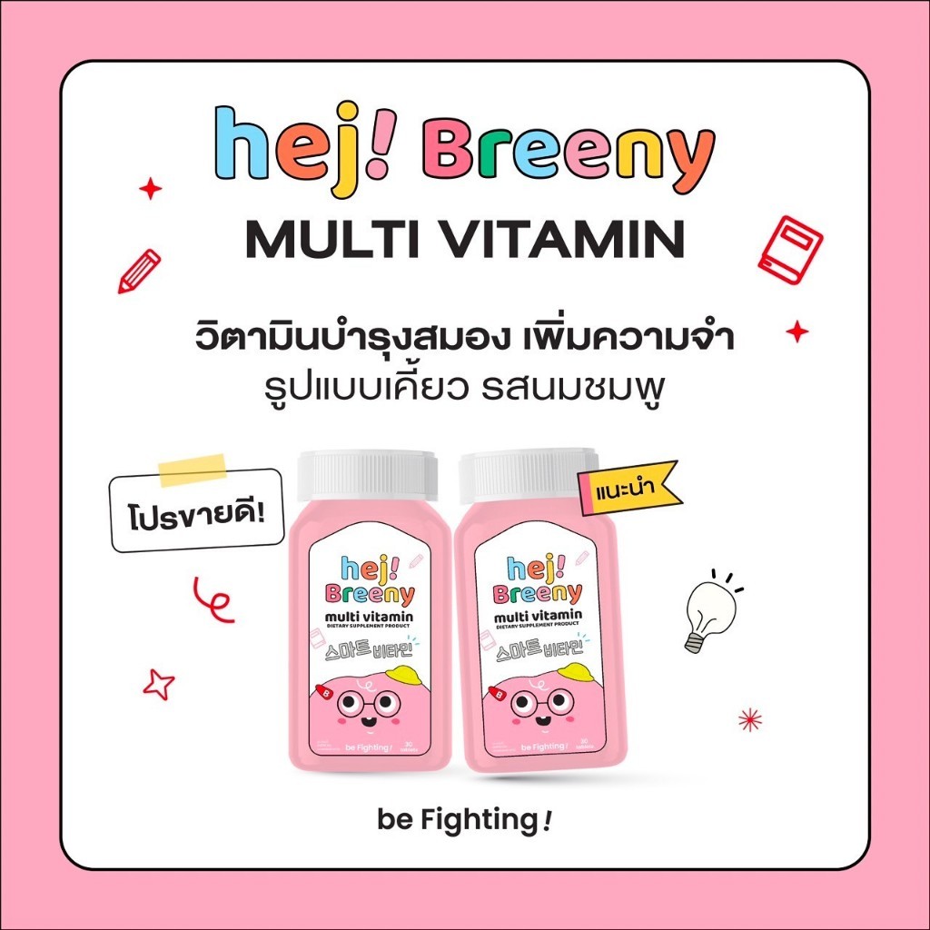 (ลด 50% ในไลฟ์)❤️🔥พร้อมส่ง!! Calplus farm Hej Breeny Multi Vitamin วิตามินบำรุงสมอง เพิ่มความจำ รูปแบบเคี้ยว รสนมชมพู
