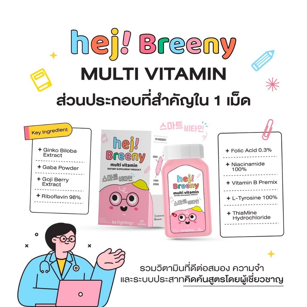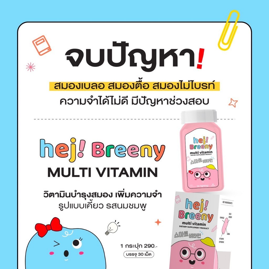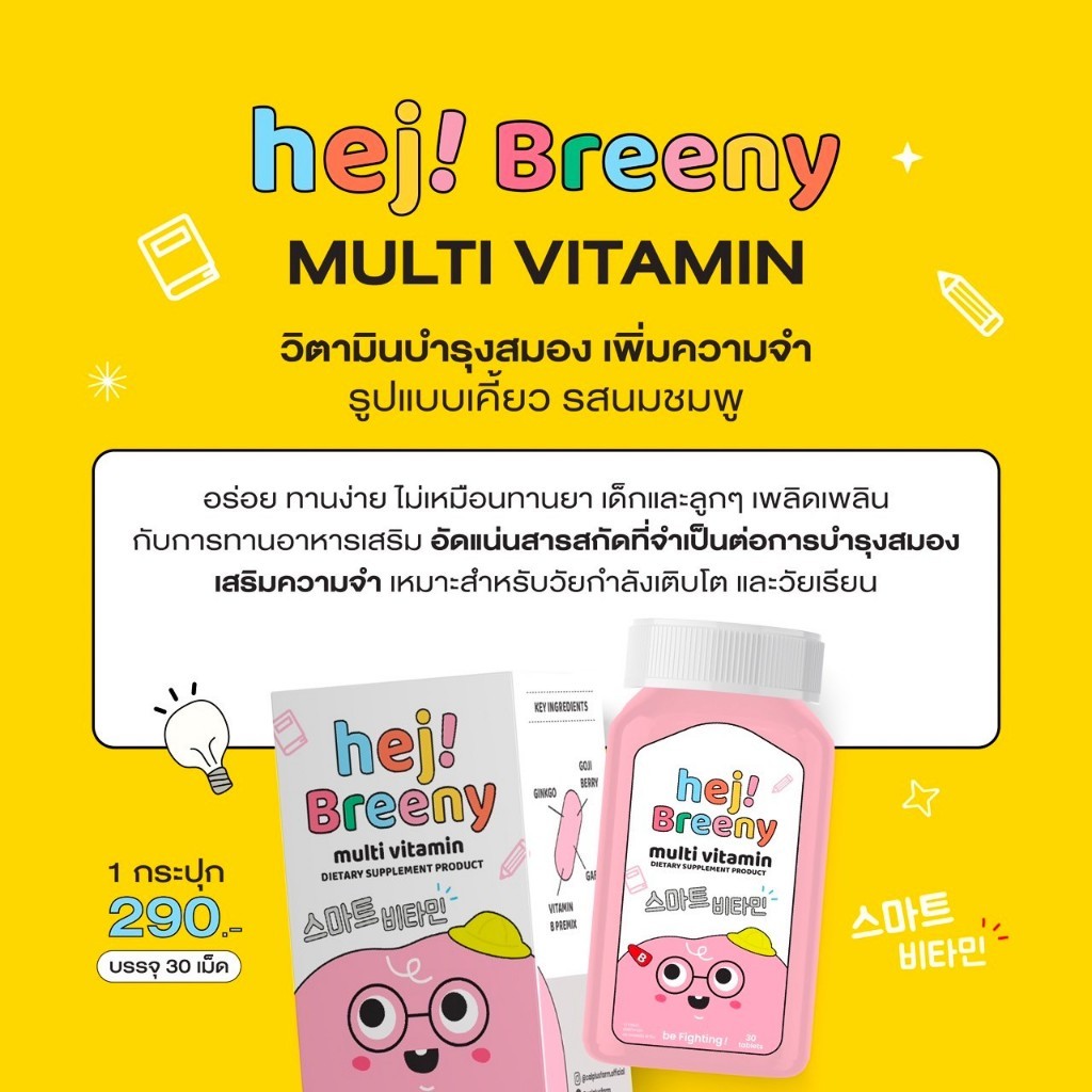 (ลด 50% ในไลฟ์)❤️🔥พร้อมส่ง!! Calplus farm Hej Breeny Multi Vitamin วิตามินบำรุงสมอง เพิ่มความจำ รูปแบบเคี้ยว รสนมชมพู