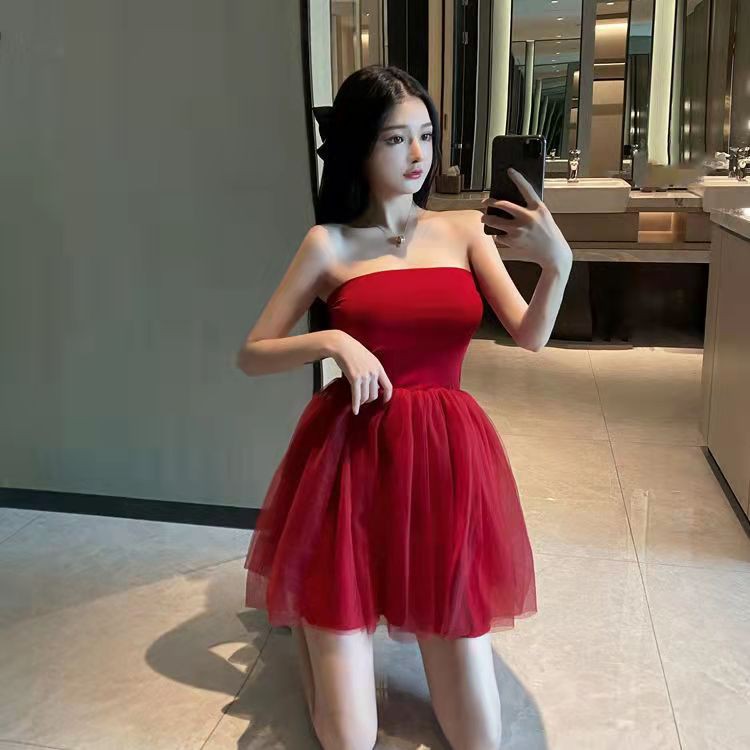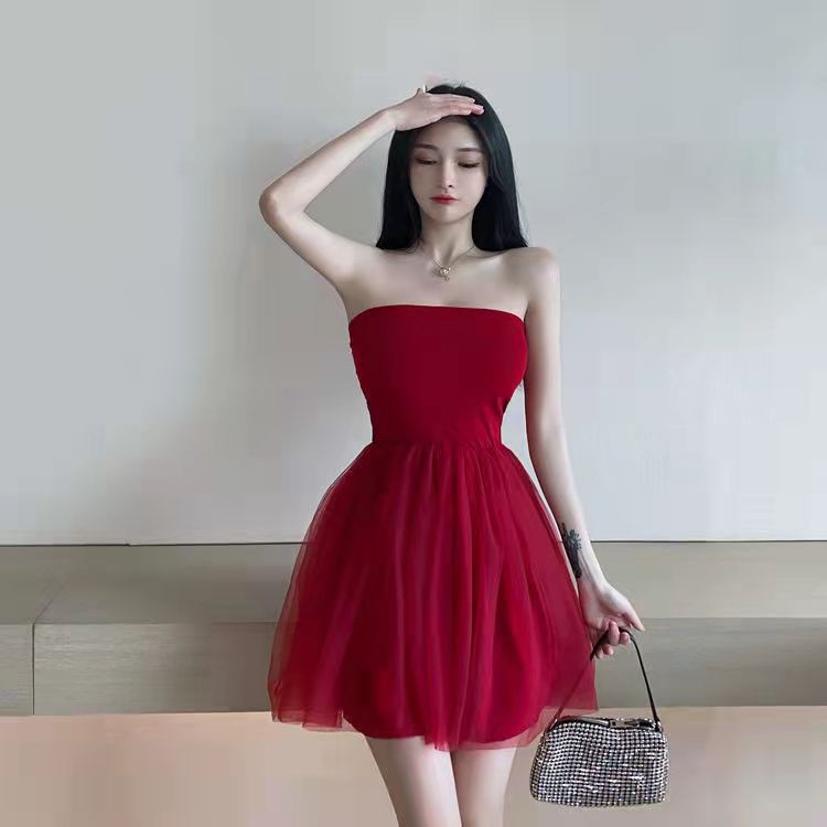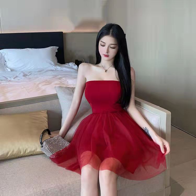 ✨จัดส่งภายใน 24 ชม👗เดรสกระโปรงสั้นเซ็กซี่ผ่าหลัง เวอร์ชั่นเกาหลี เดรสปาดไหล่หวานหน้าร้อน