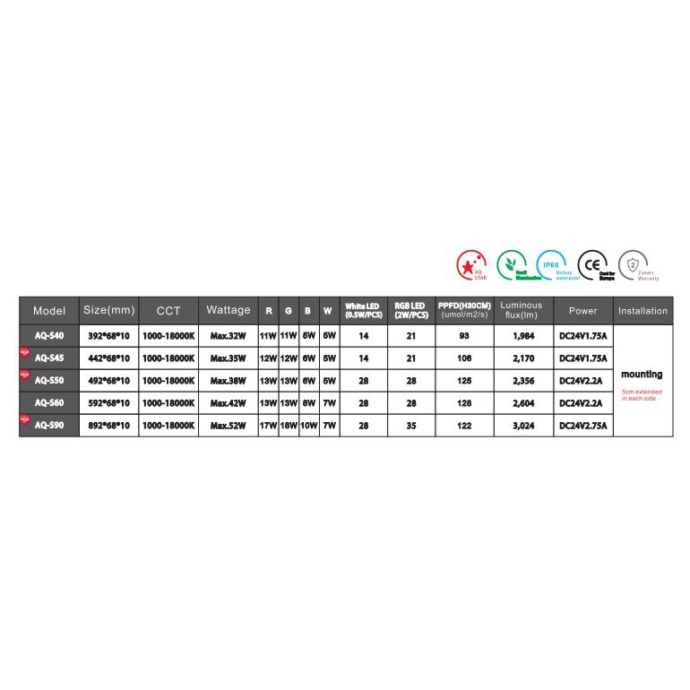 โคมไฟตู้ไม้น้ำ LEDStar AQ-S Series สำหรับตู้ 14-36 นิ้ว เหมาะสำหรับตู้ไม้น้ำ ตู้ปลา ตั้งเวลาได้ผ่านแอพ