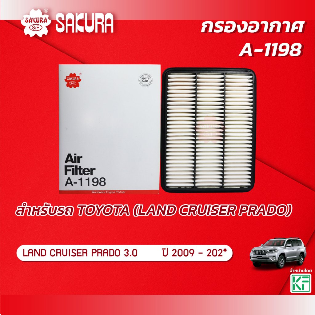 กรองอากาศซากุระ TOYOTA โตโยต้า / LAND CRUISER แลนครุยเซอร์ เครื่องยนต์ 3.0 ปี 2009 - 202* รหัสสินค้า A-1198