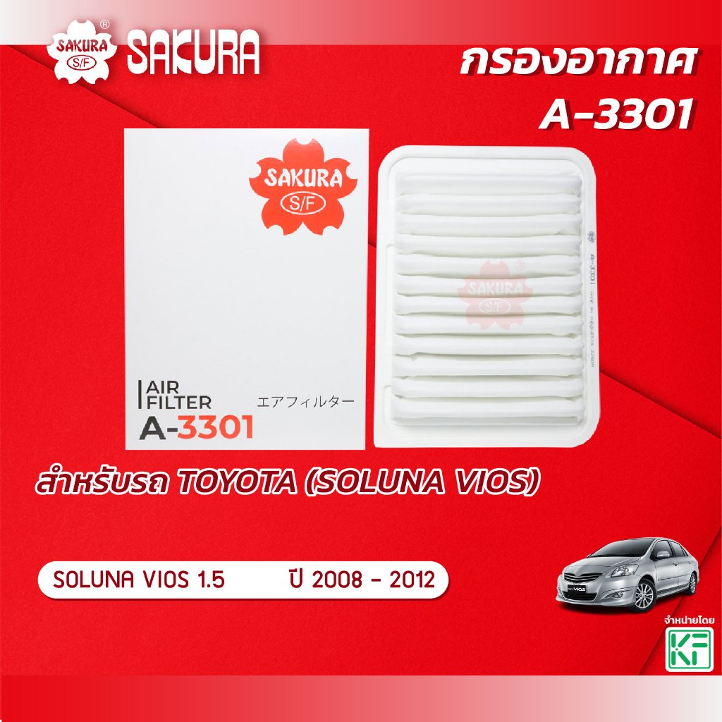 กรองอากาศซากุระ ยี่ห้อรถ TOYOTA โตโยต้า / SOLUNA VIOS โซลูน่า วีออส เครื่องยนต์ 1.5 ปี 2008-2012 รหัสสินค้า A-3301