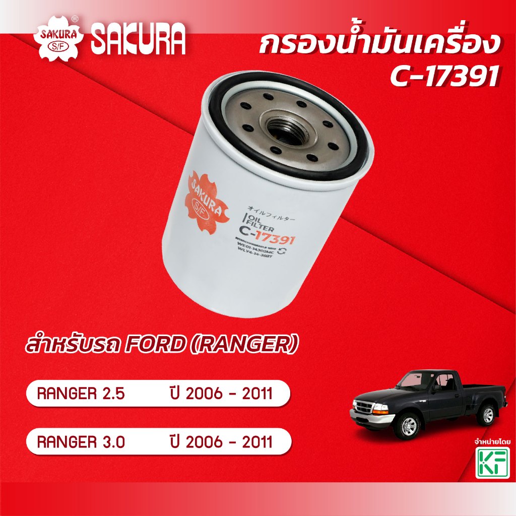 กรองน้ำมันเครื่อง ฟอร์ด เรนเจอร์ FORD RANGER 2.5 / 3.0 ปี 2006-2011 ยี่ห้อ ซากุระ รหัสสินค้า C-17391