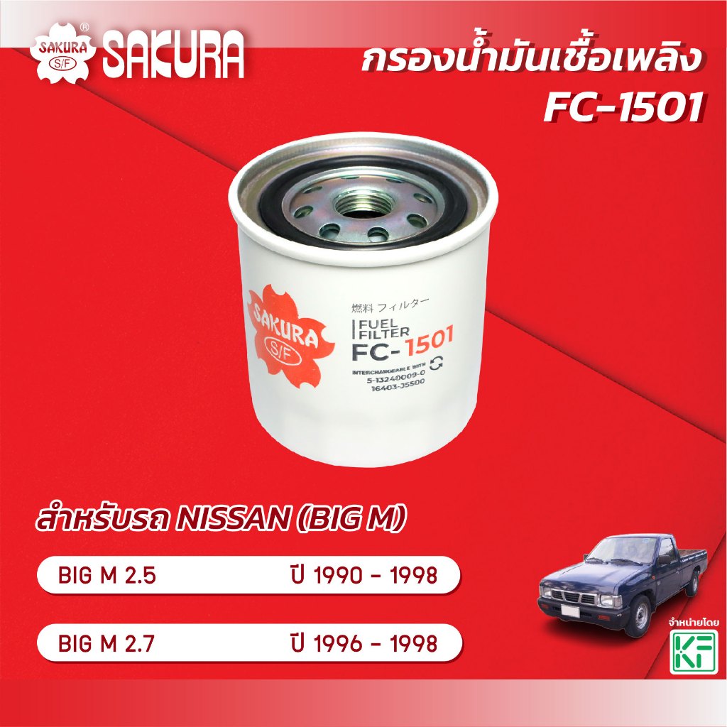 กรองน้ำมันเชื้อเพลิง/กรองโซล่า NISSAN BIG-M เครื่องยนต์ 2.5 / 2.7 ปี 1996-1998 ยี่ห้อ ซากุระ รหัสสินค้า FC-1501