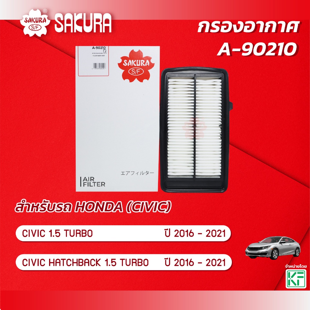 กรองอากาศ ฮอนด้า ซีวิค HONDA CIVIC / HATCHBACK เครื่องยนต์ 1.5 TURBO ปี 2016 -2021 ยี่ห้อ ซากุระ A-90210